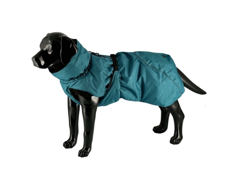 Vanntett (3000 mm) varmeteppe med teipede sømmer. Dekselet beskytter mot regn, vind og kulde. Refleksdetaljer, justerbar halsåpning, krage og snor og åpning på baksiden for sele.