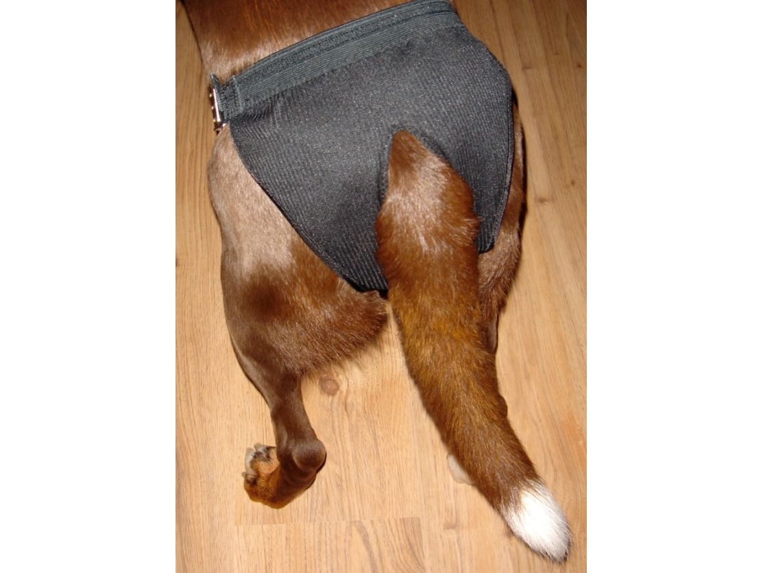 Bekvämt tikskydd i stretchnylon med hål för svansen. Enkelt justerbart magband med snäpplås. Inklusive tikskyddsinlägg. Mät runt midjan för att få fram rätt storlek till din hund.