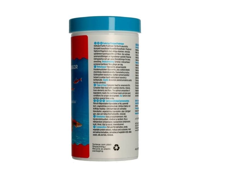 Ett multi-ingrediens basfoder i flingform till all sötvattensfisk i akvarium, för daglig matning.