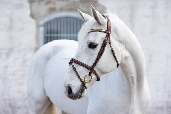 California är vårt Aachenträns i mjukt oljat vegetabiliskt garvat läder med fodrad nosgrimma och nackstycke. Med tränset följer ett pannband med klinker i mässing. Tränset har mässingfärgade spännen och ljusa dekorsömmar.  Aachenträns är ett av de vanligaste tränsen till häst och det består av en övre nosgrimma och en undre snokrem. När man sätter på det övre nosgrimman placeras den cirka två fingrar under hästens kindben och justeras så att det är möjligt att placera minst två fingrar under.Alla våra träns säljs utan tyglar.