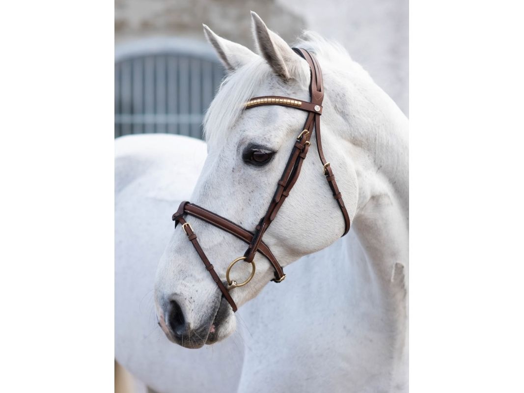 California är vårt Aachenträns i mjukt oljat vegetabiliskt garvat läder med fodrad nosgrimma och nackstycke. Med tränset följer ett pannband med klinker i mässing. Tränset har mässingfärgade spännen och ljusa dekorsömmar.  Aachenträns är ett av de vanligaste tränsen till häst och det består av en övre nosgrimma och en undre snokrem. När man sätter på det övre nosgrimman placeras den cirka två fingrar under hästens kindben och justeras så att det är möjligt att placera minst två fingrar under.Alla våra träns säljs utan tyglar.