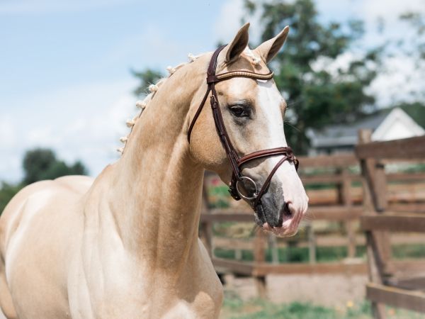 California är vårt Aachenträns i mjukt oljat vegetabiliskt garvat läder med fodrad nosgrimma och nackstycke. Med tränset följer ett pannband med klinker i mässing. Tränset har mässingfärgade spännen och ljusa dekorsömmar.  Aachenträns är ett av de vanligaste tränsen till häst och det består av en övre nosgrimma och en undre snokrem. När man sätter på det övre nosgrimman placeras den cirka två fingrar under hästens kindben och justeras så att det är möjligt att placera minst två fingrar under.Alla våra träns säljs utan tyglar.