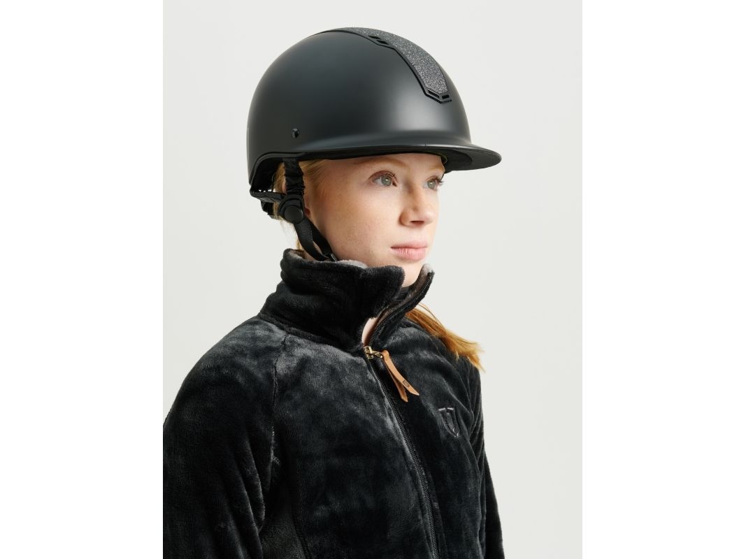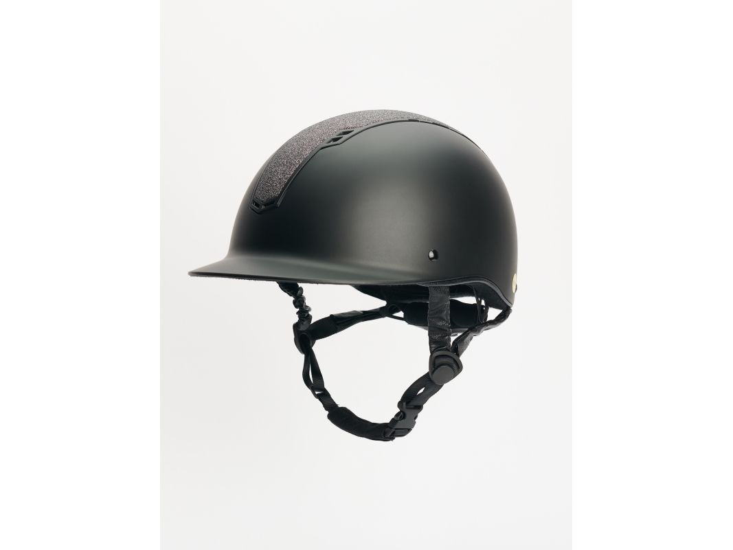 Denna svarta ridhjälm med MIPS säkerhetssystem är den ultimata kombinationen av säkerhet och stil. Med MIPS-teknologin (Multi-Directional Impact Protection System) kan du vara säker på att du får den bästa skyddet vid en eventuell olycka. Dessutom har ridhjälmen strassdetaljer som ger den lite extra glans och personlig touch. Den svarta färgen gör att ridhjälmen passar in i de flesta sammanhang och den finns även i flera andra färger för att du ska kunna hitta en ridhjälm som passar just dig. Oavsett om du är ute efter en ridhjälm med en mer neutral färg eller en mer livfull färg, finns det en ridhjälm för dig i sortimentet. När det kommer till komfort är ridhjälmen utformad med ett ventilerat innanmäte som håller huvudet svalt och bekvämt även under de varmaste ridturerna. Dessutom kan du enkelt justera storleken på hjälmen med hjälp av en spännrem så att du får en perfekt passform. Allt som allt är den svarta ridhjälmen med MIPS säkerhetssystem den perfekta valet för dig som vill ha en säker, bekväm och stilren ridhjälm. Glitterpaljetter. VG1 godkänd. Justerbar storlek. Hakband täckt med syntetiskt skinn.