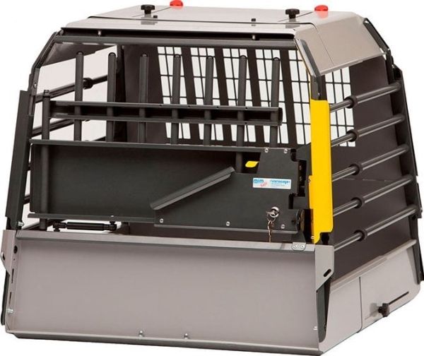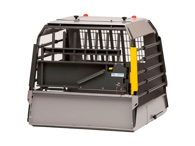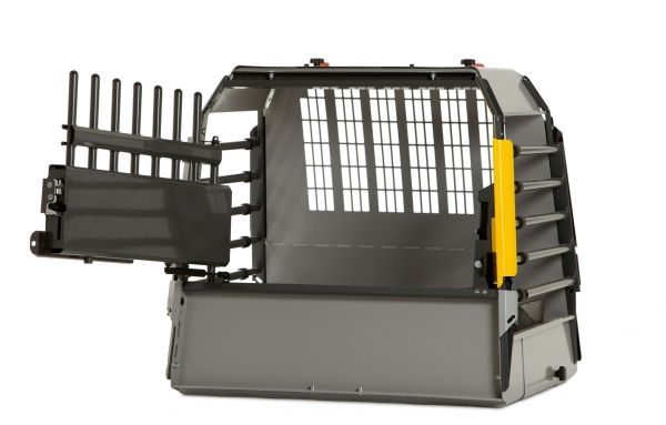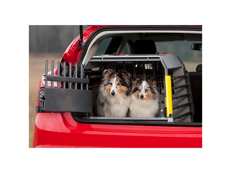 Et sikkert og meget praktisk hundebur til biler med en tærskel (23cm høj) ved bagagerumsåbningen.