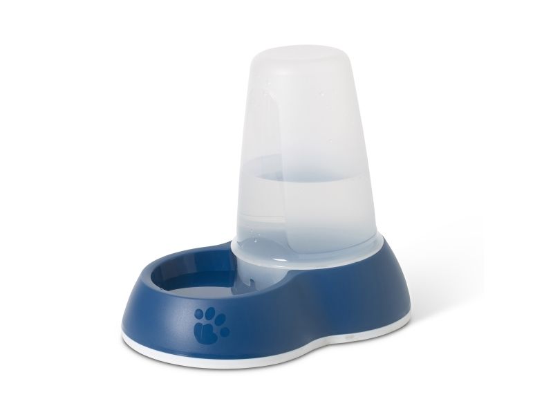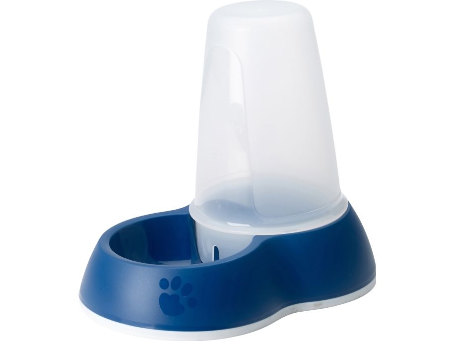En modern vattenautomat som ger hunden eller katten friskt vatten när den är törstig. Vattenbehållaren är transparent och gör det enkelt för dig att se när du behöver fylla på vatten. Skålen har integrerad gummibotten för att stå stabilt.