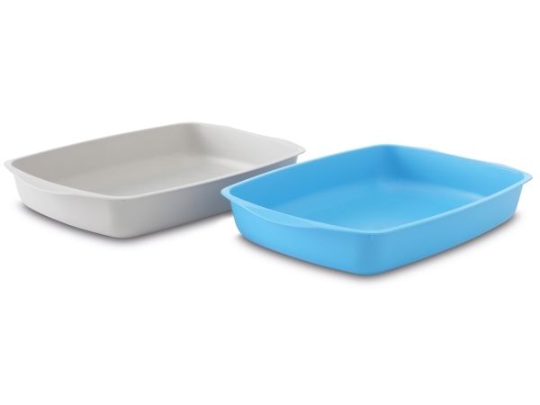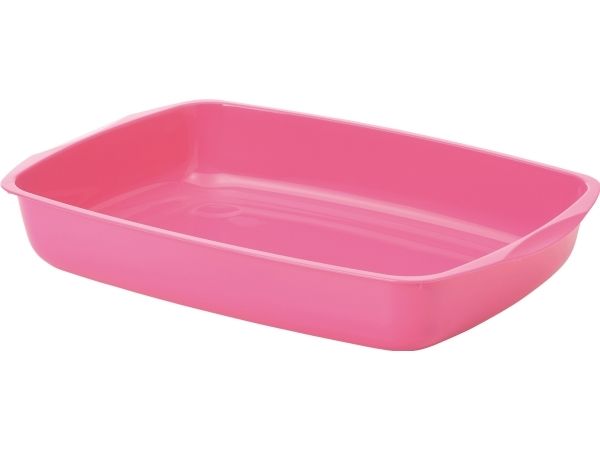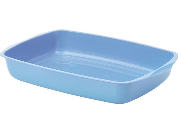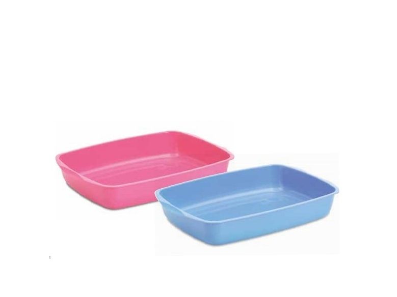 Liten toalåda i plast som levereras i någon av färgerna på bild. Perfekt både på utställningen, när man är på resande fot, i smådjursburen eller som första kattlåda till kattungar.