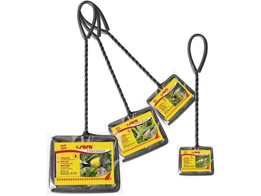En smidig håv med svart finmaskigt nät som underlättar infångandet av fisk