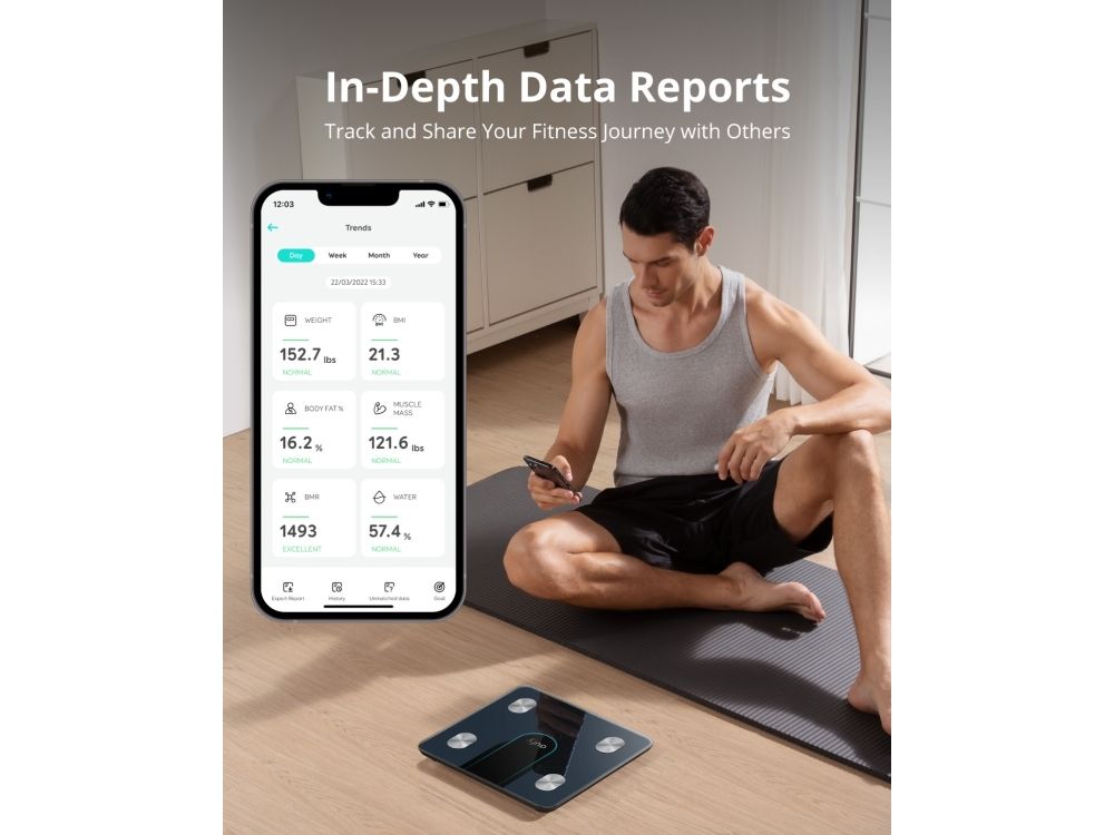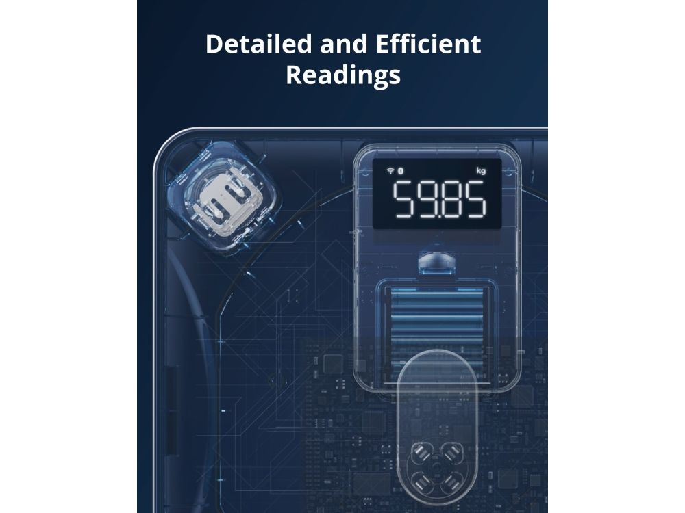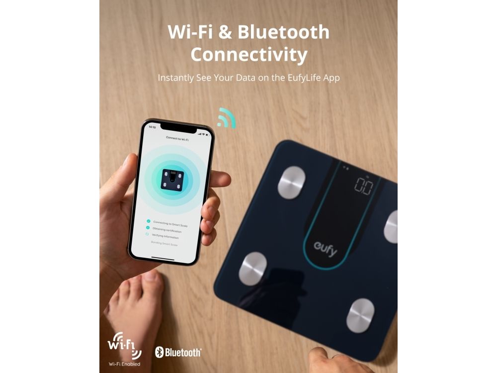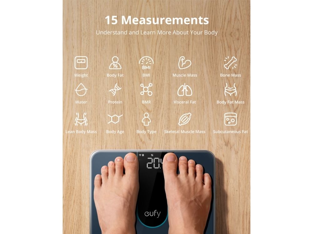 Created by the same team as Anker—renowned for exceptional quality and innovation. The EufyLife app works with Smart Scale P2 Pro to intelligently record and organize health data. The EufyLife app is compatible with devices running iOS 10.0+ and Android 5.0+. You can download the EufyLife app from the Apple App Store or Google Play Store.Eufy Smart Scale P2 Pro, Digital Bathroom Scale, Wi - Fi, Bluetooth, IPX5 Waterproof, ITO, 3D Model, 16 Measurements include Weight, Heart Rate, Body Fat, BMI, Muscle Mass, and Bone Mass. Type: Electronic personal scale, Maximum weight capacity: 180 kg, Accuracy: 50 g. Display: LED. Power source type: Battery, Battery type: AAA. Mobile operating systems supported: Android 10.0, Android 11.0, Android 12.0, Android 5.0, Android 5.1, Android 6.0, Android 7.0,.... Width: 280 mm, Depth: 280 mm, Height: 26 mm