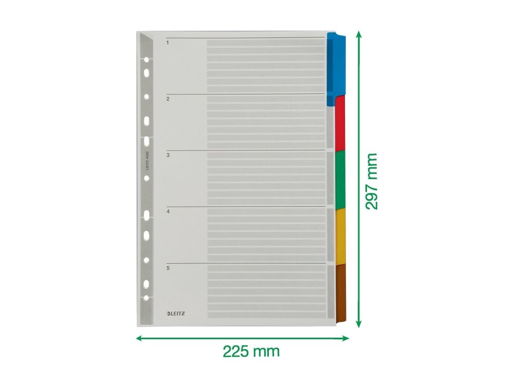 Leitz - Inndeler - 5 deler - for A4 (210 x 297 mm) - med fliker (en pakke 5)