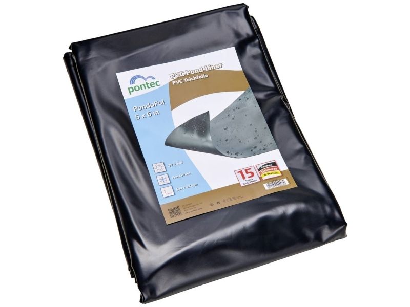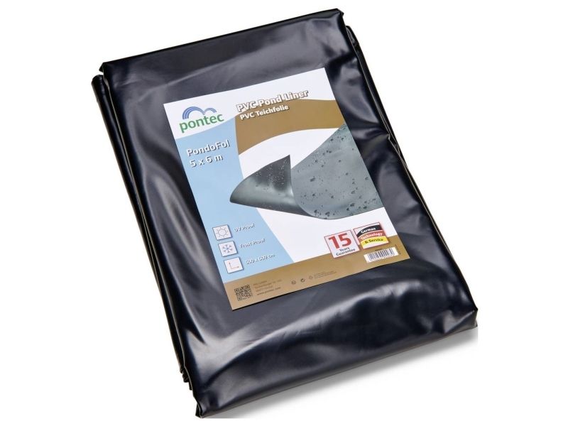 Pontec PVC-damfolie sort 0,5 mm/5 x 6 m Lang levetid og fleksibel: Med dette damfolieskærme på 5 m x 6 m kan mindre havedamme eller bække gøres naturvenlige. Den består af sort PVC, er 0,5 mm stærk, uigennemsigtig og lysbestandig. Ved udlægning er den yderst fleksibel, kan den uden problemer limes fast og ved behov også repareres (svejsesøm). Den giver en høj modstandskraft over for forskellige vejrforhold og rodtryk, er kuldebestandig i henhold til din 53361 og er modstandsdygtigt over for rådning.