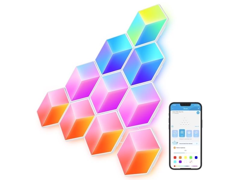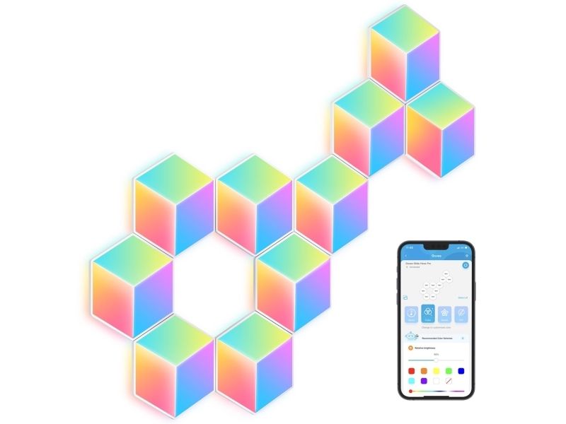 Govee Glide Hexa Pro LED Light Panels bring with brand-new 3D lighting effects. With the smart control, you can design your unique 3D lighting with the RGBIC hexagon LED light panels. 10 panels are included in one packaging. You could design your unique lighting with 25 panels at most.