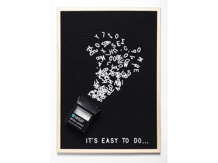 Tavlen måler: 50 x 70 cmEn smart bogstavstavle, som er nem at bruge, så du kan skifte imellem dine egne tekster.