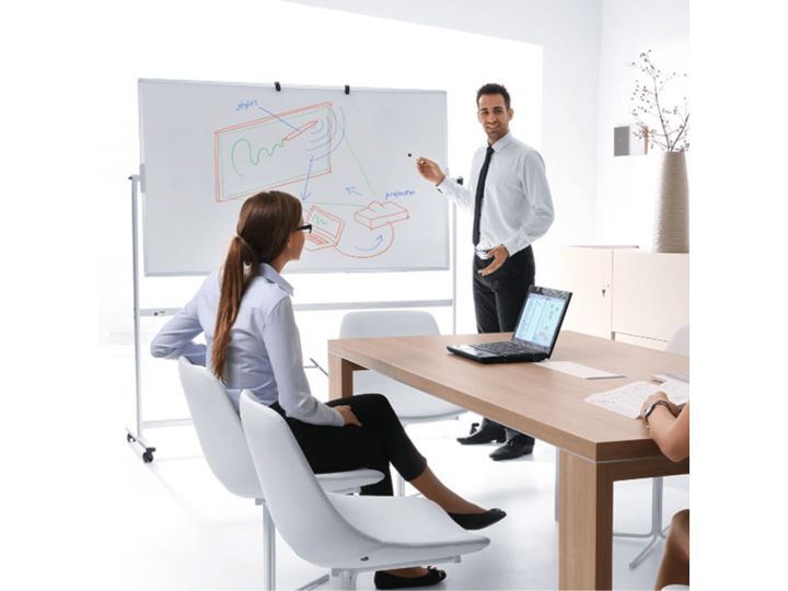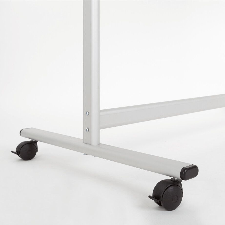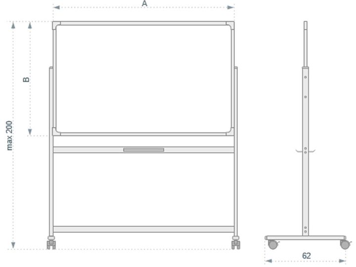 Mobil whiteboard tavle 200 x 100 cm.Dobbeltsidet vendbar og drejelig magnetisk whiteboardtavle. Dry erase, lakeret overflade, i slidstærk aluminiumsramme.Mobilt stativ i aluminium. Fire låsbare hjul.Incl. Pennebakke længde 30 cm. og monteringssæt.Bemærk: Leveres usamlet.Tavlemål (A: Bredde × B: Højde)A: 200 cm.B: 100 cm.Samlet højde 190 cm.Tavlerotation 360°, om vandret akse.
