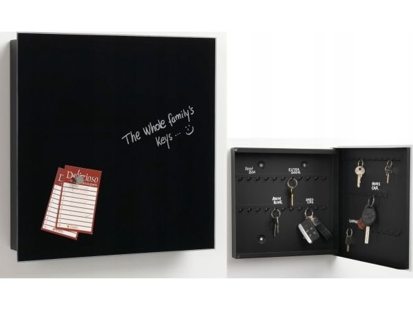 Magnetisk nøgleskab 30x30 cm. Dybde 5 cm. Sort glas.