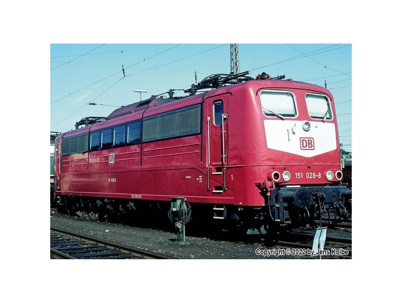 Selv om DB indførte det kontroversielle orientrøde farvekoncept allerede i 1987, varede det indtil marts 1990, før en maskine af denne type 151 med en mindste malingsgrad forekom. Det første lokomotiv i orientalsk rød med lysegrå kontrastlastklods på fronterne var så 151 021. Alle maskiner var stadig på gårdene i Hagen og Nürnberg Rbf og lå hovedsagelig i den tunge godstogsforbindelse, men fik også tilladelse til at rejse med tog og hvornår.Forbillede: Tungt godstogslokomotiv serie 151 fra Deutsche Bahn AG (DB AG). Orientrøde farvegivning.driftsnummer 151 028-8. Driftstilstand for EP. V med 1994.Model: Komplet nykonstruktion, understel med hovedramme og opbygning i trykstøbt zink. Mange påsatte messing-slyngdele. Med MFX digitaldekoder med op til 32 funktioner, indbygget bufferkondensator. Styret højkapacitetsdrev og omfattende lydfunktioner som for eksempel kørestøj, blæser, lokomotivpluff, yderligere meddelelser og advarselsmeddelelser. Drift mulig med vekselstrøm, jævnstrøm, Märklin Digital og DCC. Højeffektive motorer med drev på alle aksler. Strømbuffere kan parameteres. I digital drift, som kan hæves med motor og sænkes tagstrømsforbruger. Hvid/rød LED-frontlanterne, skifter kørselsretning, konventionelt i drift, kan kobles digitalt. Belysningen kan tilkobles i maskinrummet, LED-belysning i førerrummet samt startlampen afhænger af kørselsretningen. Døre til førerhus kan åbnes, indvendig indretning, førerhus med lokoførerfigur. Betjeningshåndtag af metal og mange andre påsatte detaljer som skilte, vinduesviskere, fløjte m.m. Bufferbjælke med fjederbuffere og påsatte bremseledninger. Telexkobling bagpå, som er monteret som standard, foran skruekobling. Kan udskiftes med den anden koblingstype (medfølger). Kørbar minimumsradius 1.020 mm. Længde over buffer 60,9 cm. Vægt ca. 6,9 kg.