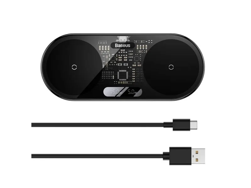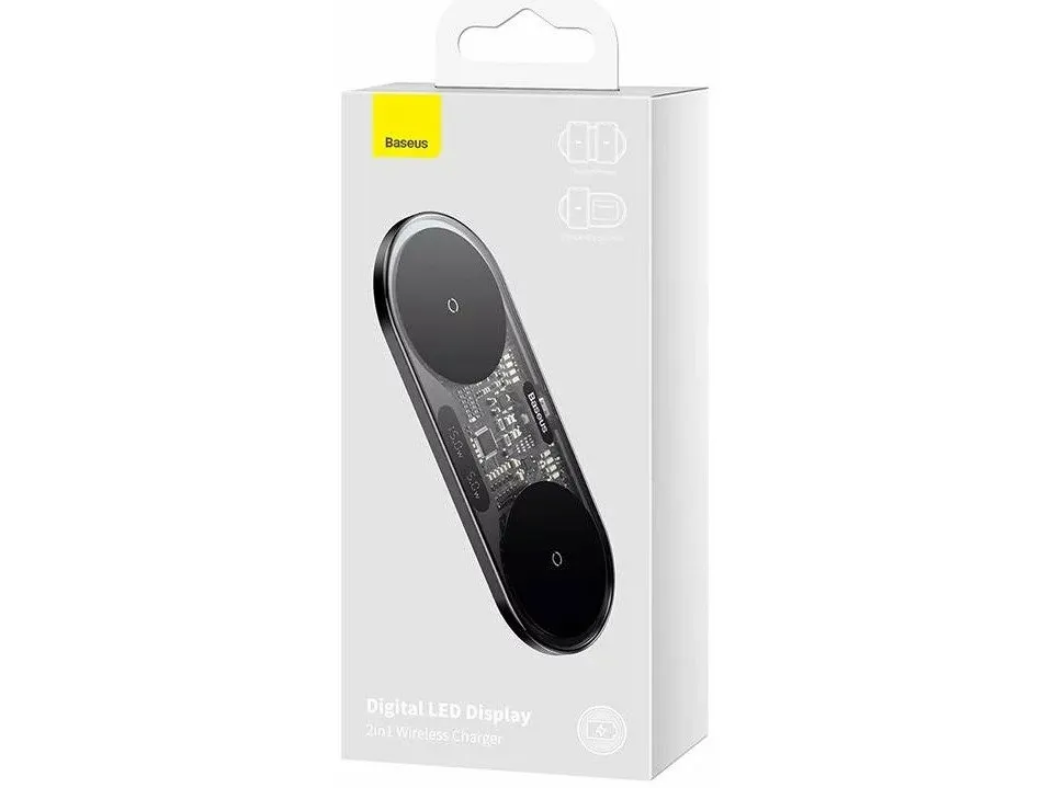 Charge your devices using Qi technology. You will be helped by the Baseus Digital LED Display wireless charger, which allows you to renew the energy of two devices simultaneously. It is equipped with a practical display, is compatible with iOS and Android devices, plus it has a multi-level security system.