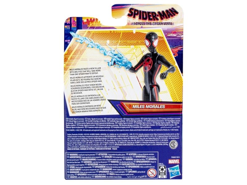 Miles Morales slåss mot en ny skurk med krefter som det trengs mer enn én Spider-Man for å bekjempe! Slipp løs kraften til Spider-Verse med Marvel Spider-Man: Across the Spider-Verse-actionfigurene! Barn fra 4 år kan forestille seg vevslyngende eventyr med denne 15 cm høye Miles Morales-actionfiguren som er inspirert av filmen Spider-Man: Across the Spider-Verse. Figuren har filminspirert design og detaljer, samt flere bevegelige ledd og et morsomt figurinspirert spindelvevtilbehør. Barna kommer til å elske å forestille seg superheltkamper med denne Miles Morales-leken! Copyright 2022 MARVEL. Copyright 2022 SPA & CPII. Hasbro og alle tilhørende begreper er varemerker som tilhører Hasbro.