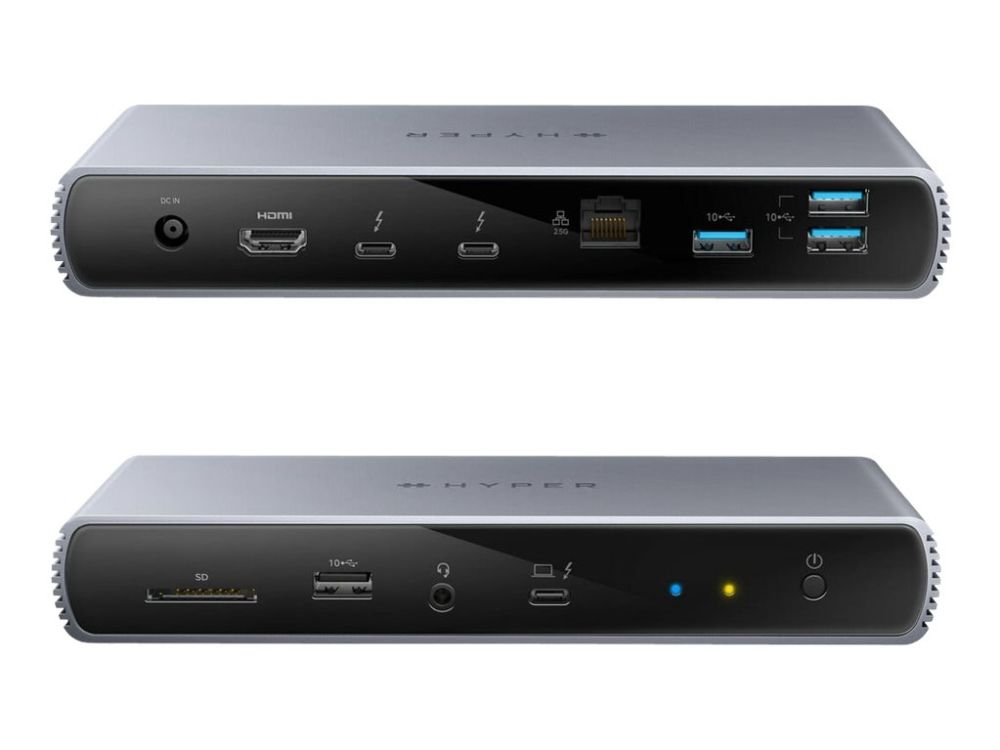 Hyper Thunderbolt 4 dockingstation milepæl Thunderbolt 4 docking-stationen er egnet til virksomheder, pc-spillere og videoarbejdere, der søger en avanceret tilslutningsløsning, der giver maksimal båndbredde og episke skærmopløsninger. Den har 2x Thunderbolt 4 downstream-tilslutninger, 40 Gbit/s dataoverførsel og 32 Gbps PCIe-overførsler og 1x Thunderbolt 4 upstream-port, en 96 W Power Delivery-opladning til din host-enhed. Nyd også spil og videoredigering som aldrig før med dobbelt 4K displayunderstøttelse via HDMI eller Thunderbolt, en superhurtig 2.5. Gigabit-Ethernet-forbindelse og High Resolution Audio med mulighed for at vælge mellem naturtro 8K 30Hz eller 4K 120Hz opløsning for at sikre en hurtigere rendering med mindre skarphed.
