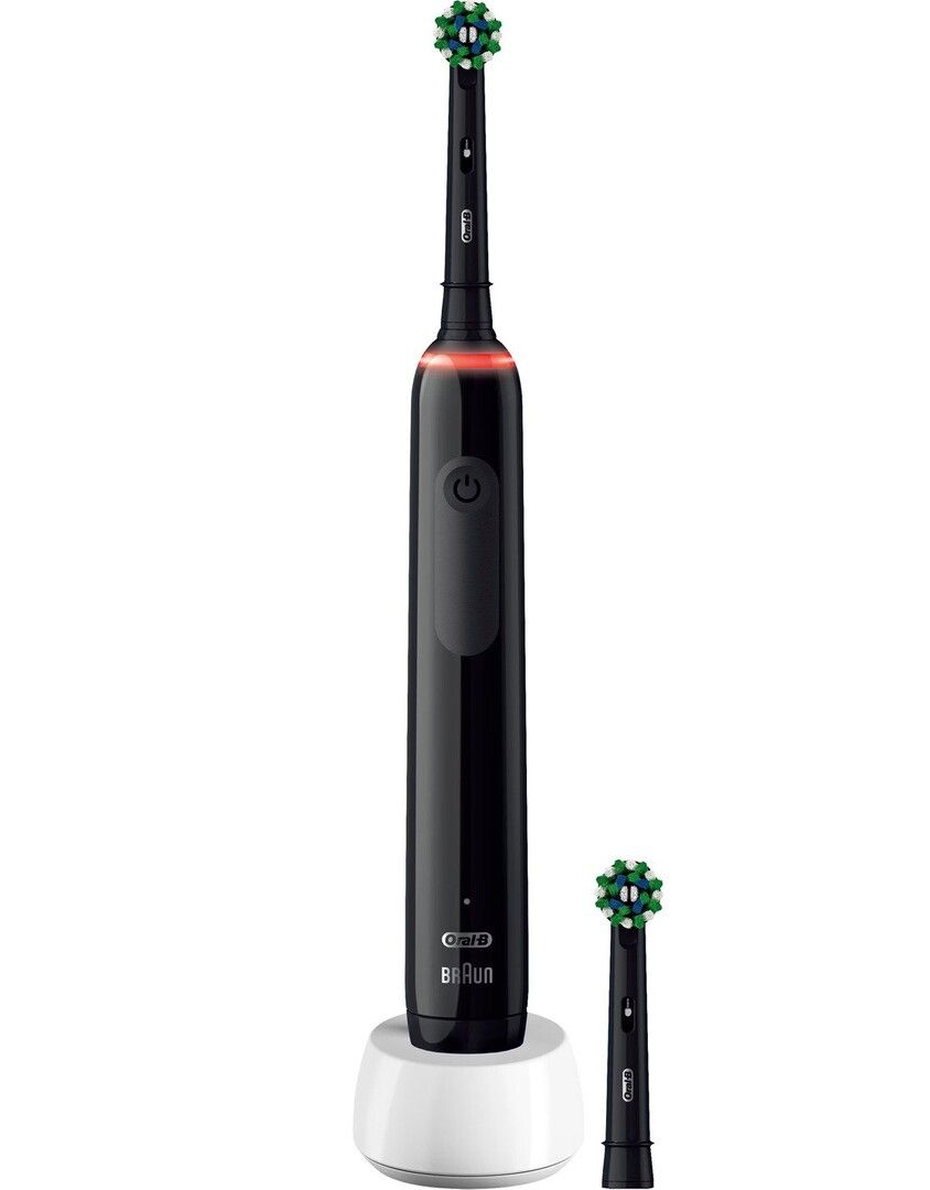 Oral-B Pro 3 Pro3 3000. Purpose: Adult, Toothbrush type: Rotating-oscillating toothbrush, Teeth brushing modes: Daily care, Sensitive, Whitening. Power source: Battery, Battery type: Built-in battery, Battery technology: Lithium-Ion (Li-Ion). Weight: 267.65 g. Package type: Box. Number of handles included: 1 pc(s), Number of brush heads included: 2 pc(s)