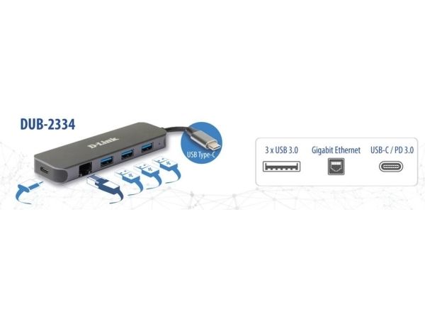 D-Link DUB-2334 - Dokkingstasjon - USB-C - HDMI - 1GbE