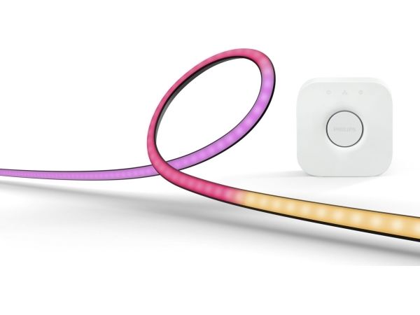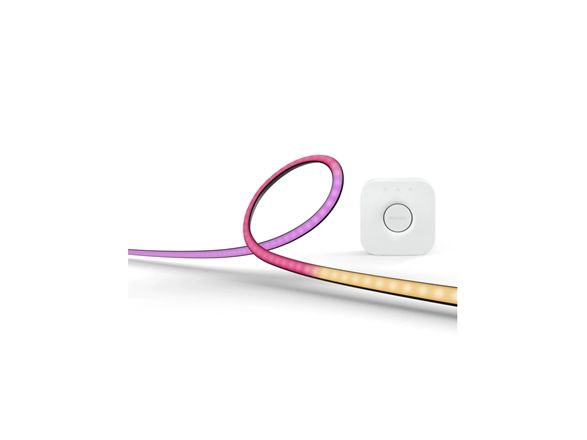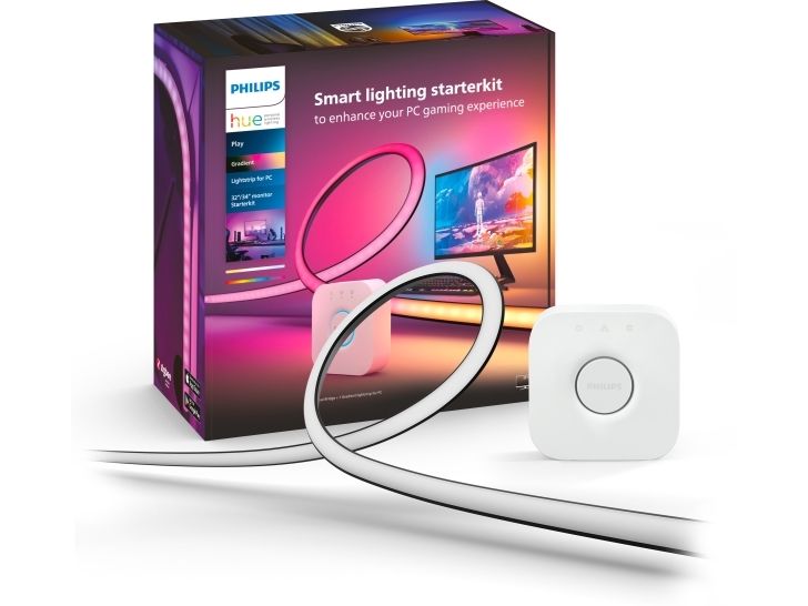 Opplev spennende hjemmeunderholdning med Philips Hue Play gradient lightstrip. Få flere lysfarger som reagerer på innholdet på skjermen. Fest til veggmonterte eller frittstående TV-er (75 tommer eller større) med det inkluderte festet.