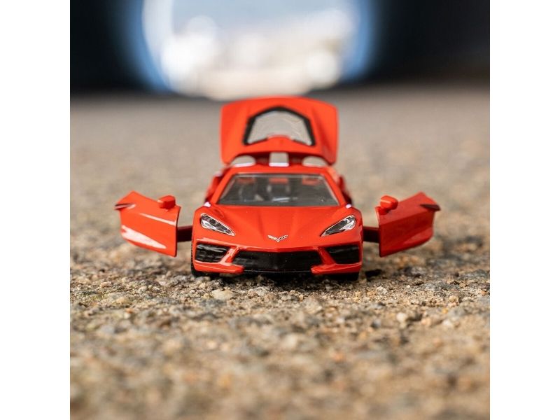 Detaljert leketøysmodell av en Chevrolet Corvette Stingray med en robust, stabil design takket være metallkropp. Meget gode rulleegenskaper takket være gummidekk, Utskiftbare hjul, Dører og panser kan åpnes. Perfekt tillegg til andre siku-produkter. Materiale: metall/plast, Målestokk: 1:50, mål: 9,2 x 3,9 x 2,5 cm.