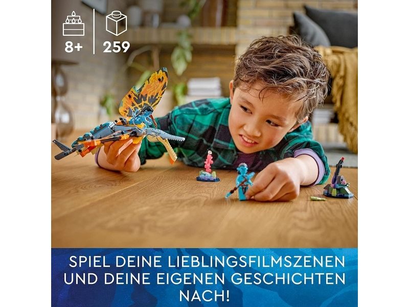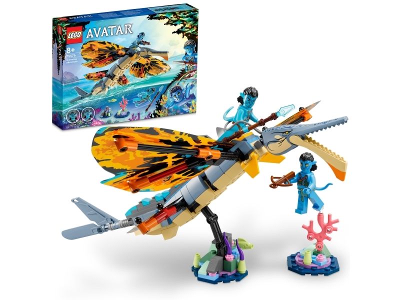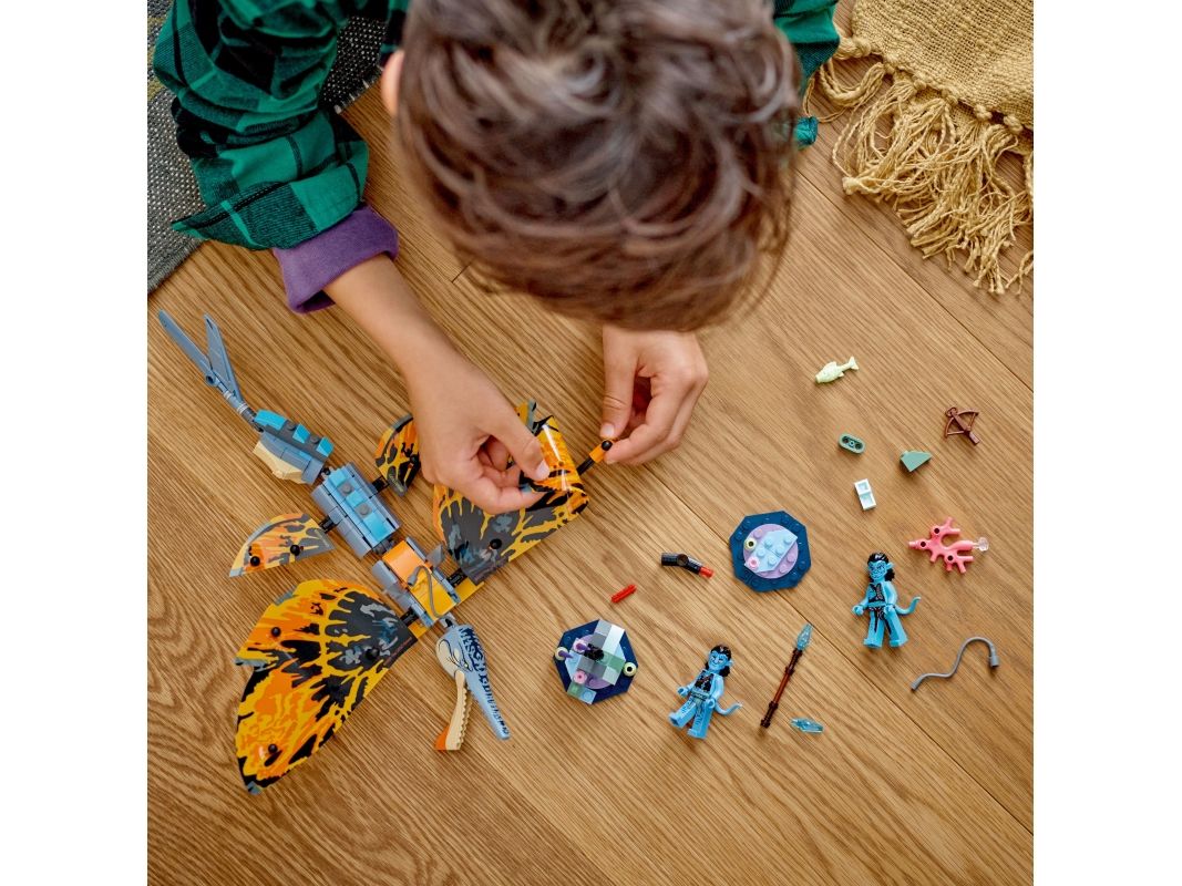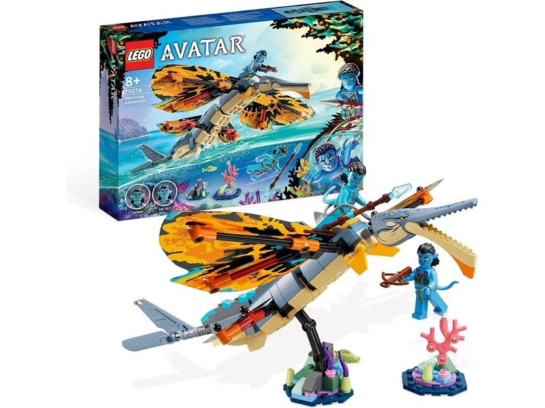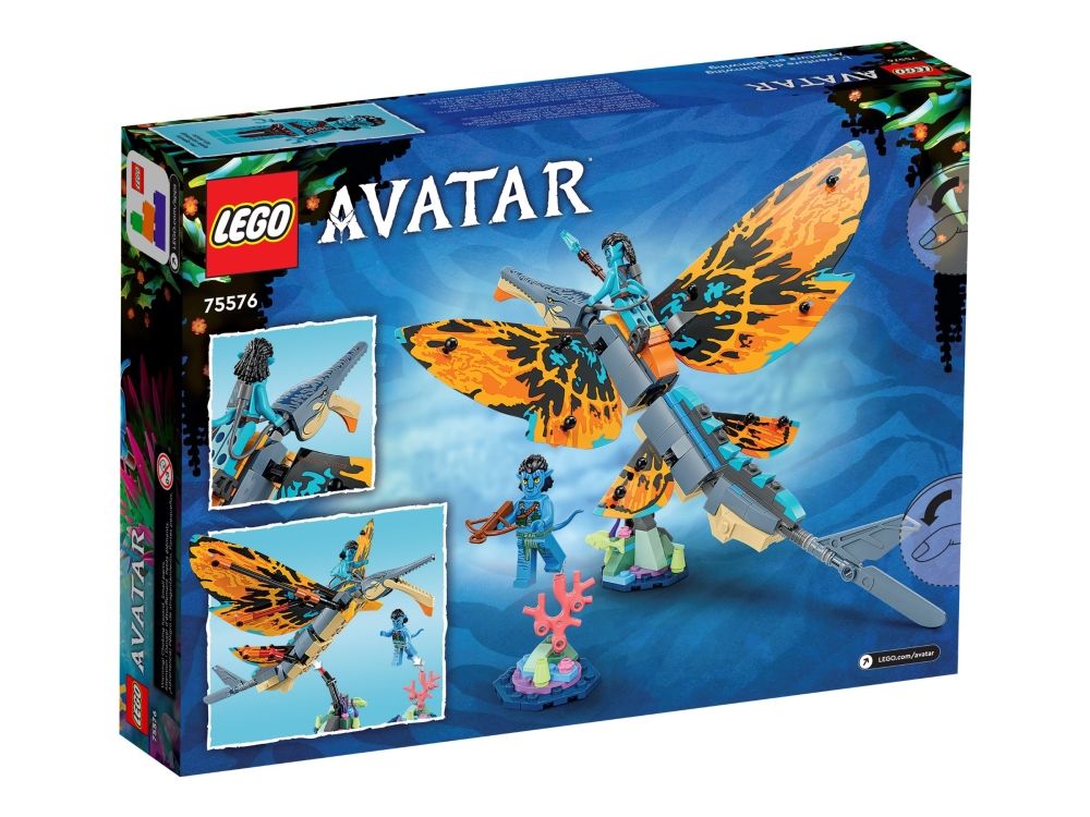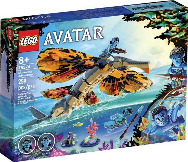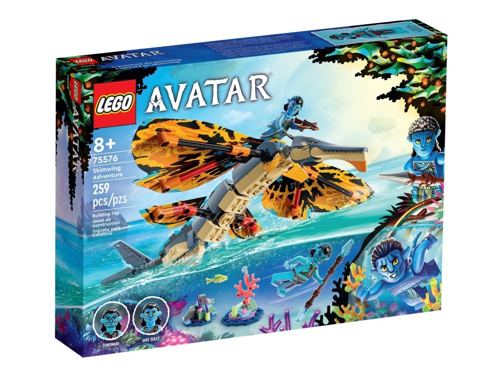 Avatar-fans fra åtte år kommer til å elske settet LEGO® Avatar Skimwing-eventyr (75576). Barn og kinogjengere kan gjenoppleve favorittscener fra filmen eller finne på sine egne scenarioer og fortellinger med den bevegelige skimwing-figuren, minifigurene av Tonowari og Jake Sully og et korallrev-scenario på Pandora.