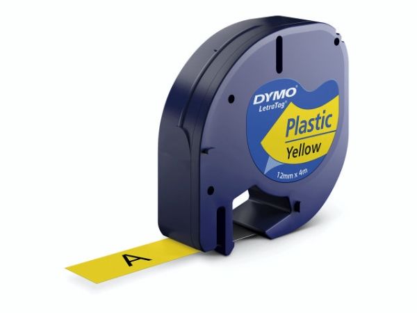 DYMO LetraTAG - Plastik - sort på gul - Rulle (1,2 cm x 4 m) 1 kassette(r) tape - for LetraTag LT-100H, LT-100T
