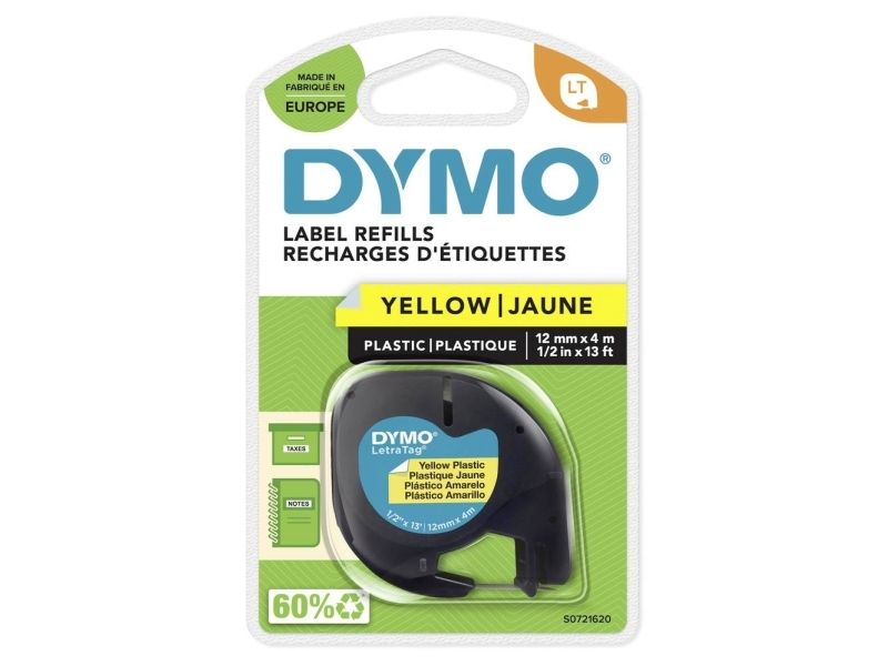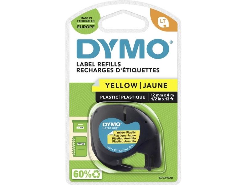 DYMO LetraTAG - Plastik - sort på gul - Rulle (1,2 cm x 4 m) 1 kassette(r) tape - for LetraTag LT-100H, LT-100T