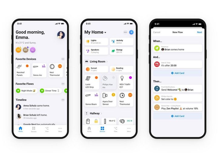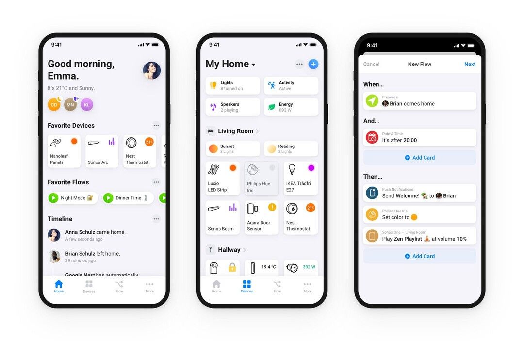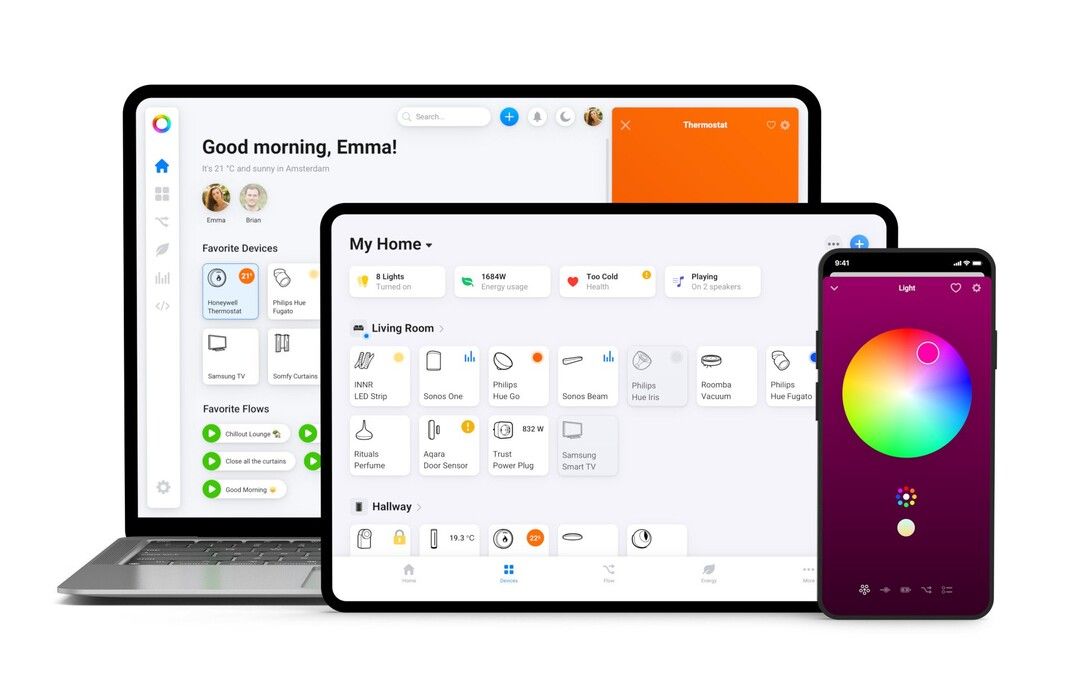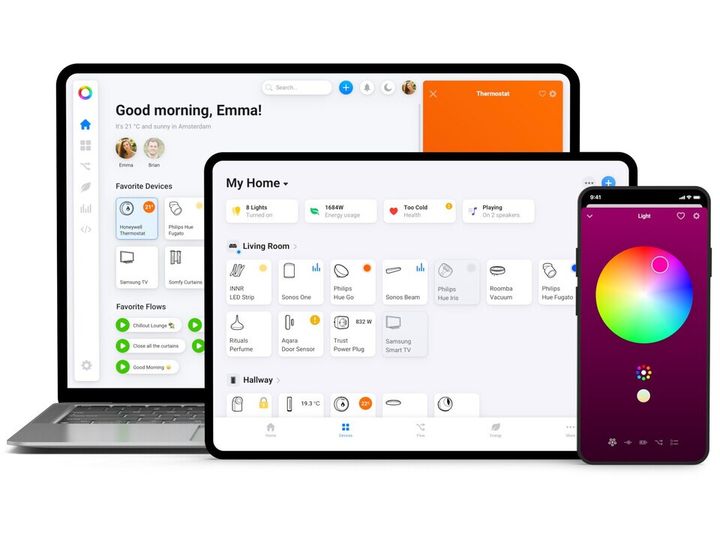 - Avanserte strømmer: Lag kraftige automatiseringer med Homeys intuitive «Flow»-verktøy - få enhetene dine til å jobbe sammen uten begrensninger.