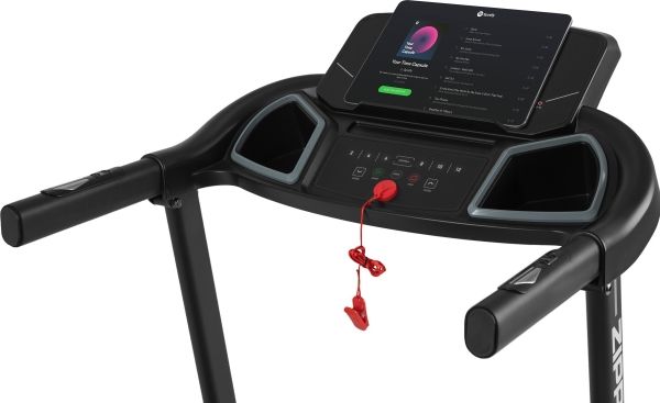 Musikk, filmer og serier er alltid med deg, selv mens du løper. Tredemøllen er utstyrt med en spesialhylle for smarttelefon eller nettbrett, slik at du trygt kan bruke enheten under trening.