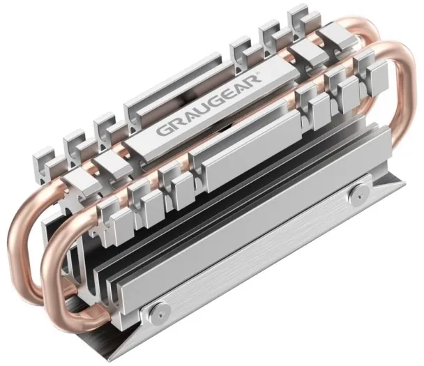 The four 4 mm copper heat pipes and aluminum heat sink ensure for maximum performance.GRAUGEAR G-M2HS06. Type: Heatsink/Radiator. Product colour: Aluminium, Copper