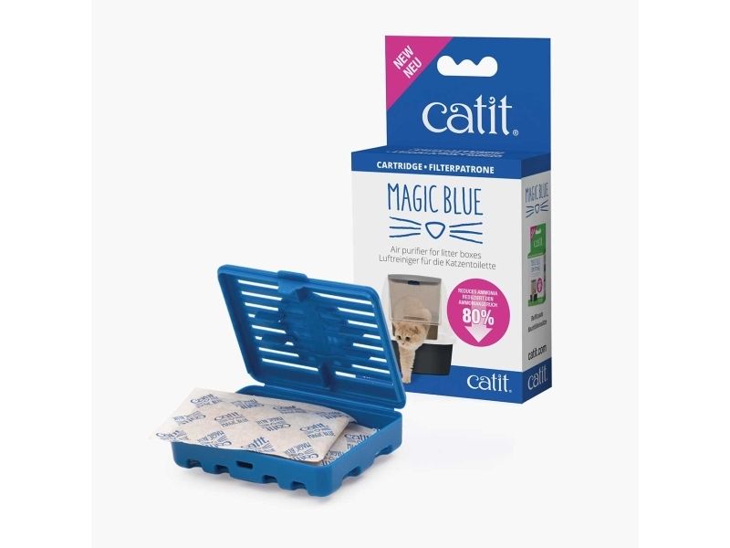 Catit Magic Blue er unikke kattevenlige filterpuder, der absorberer dårlige ammoniakgasser i din kats kattebakke uden brug af kemikalier. Den holdbare filterholder er kompatibel med enhver affaldsboks med hætte.
