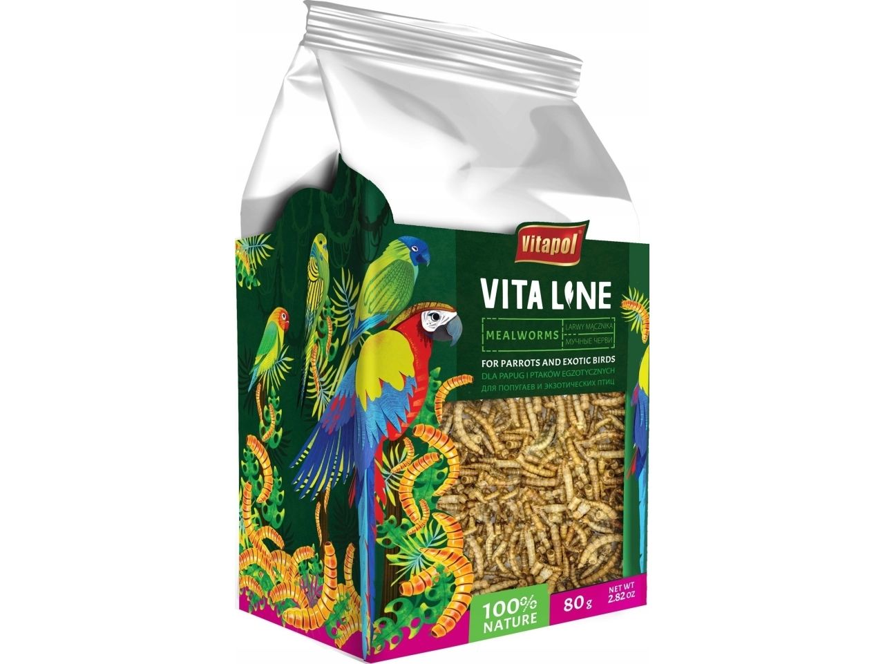 Vitapol Vitaline Melormlarver for papegøyer og eksotiske fugler 80g, 4stk/disp