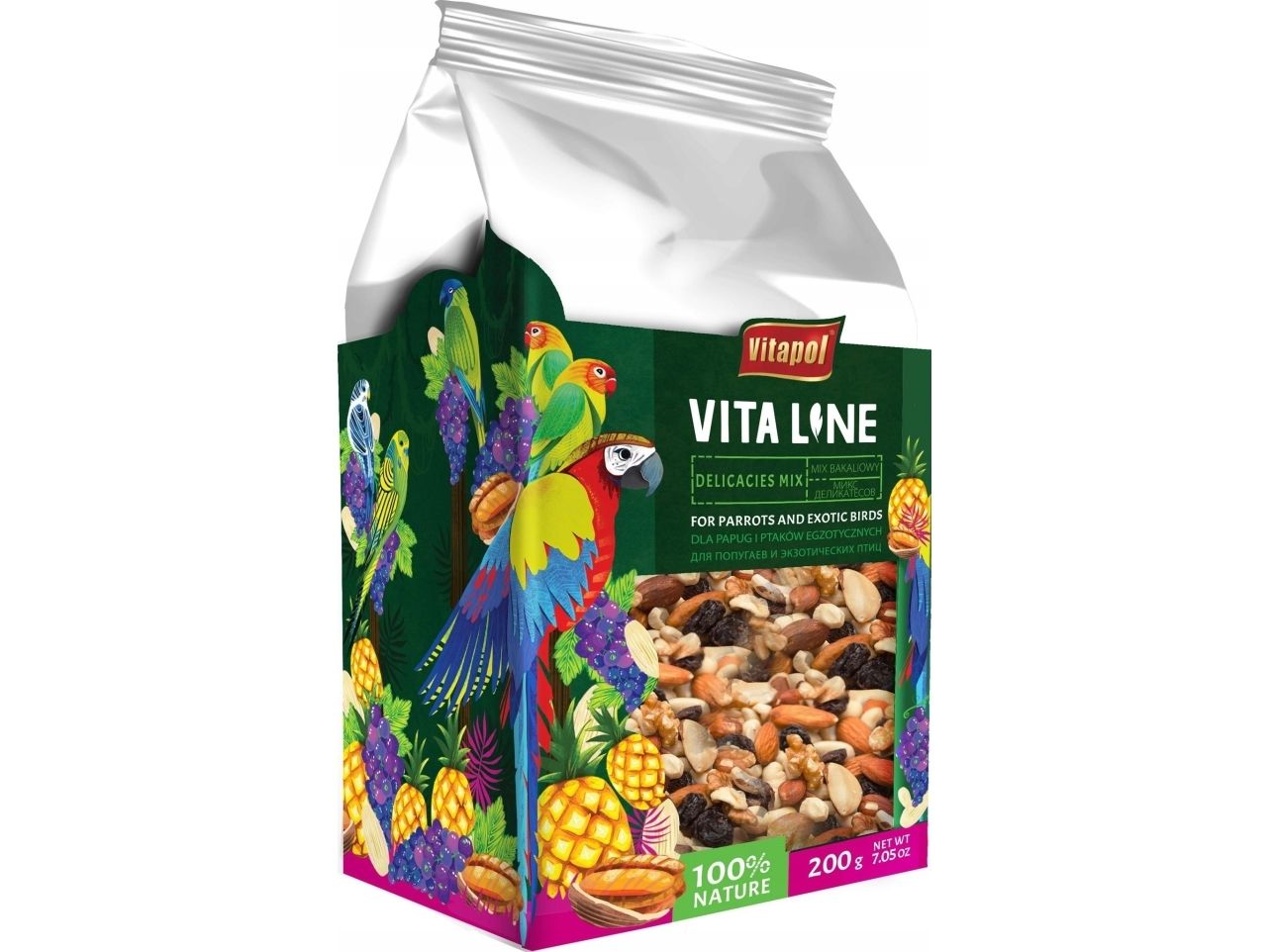 Vitaline Blanding av tørket frukt og nøtter til papegøyer og eksotiske fugler 200g, 4 stk/disp