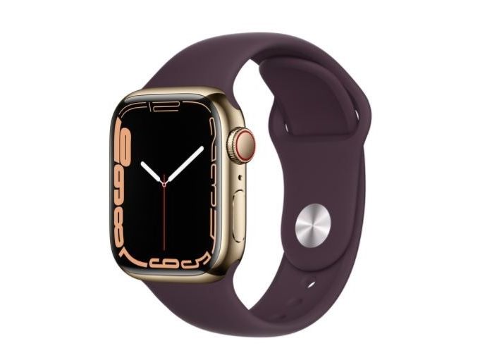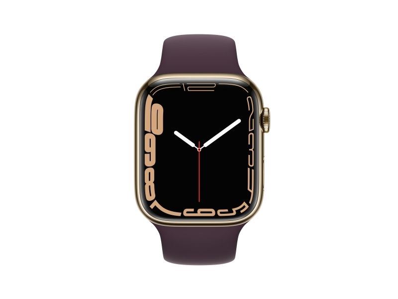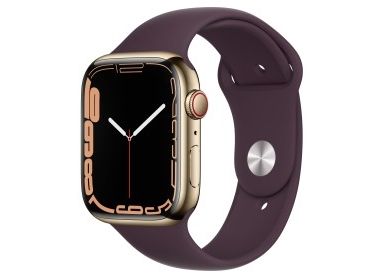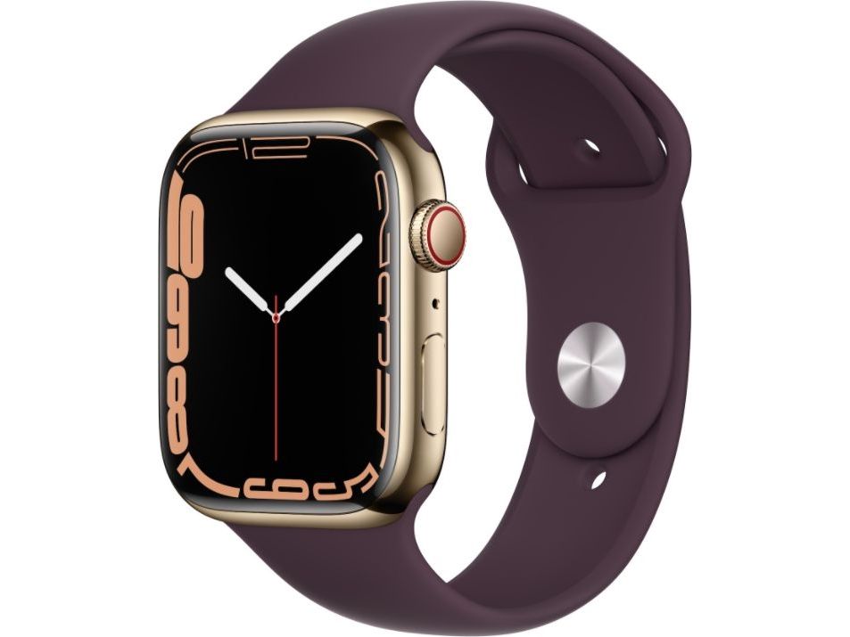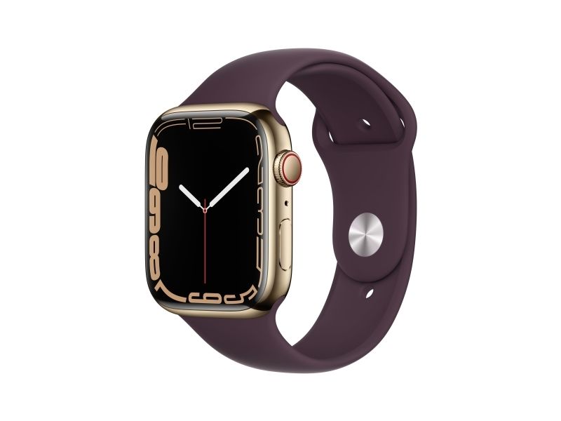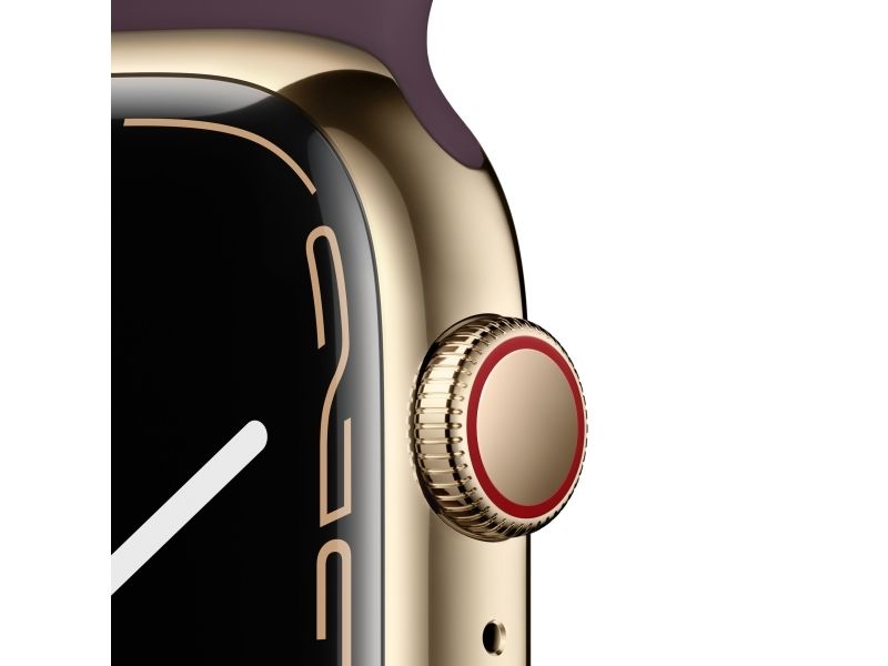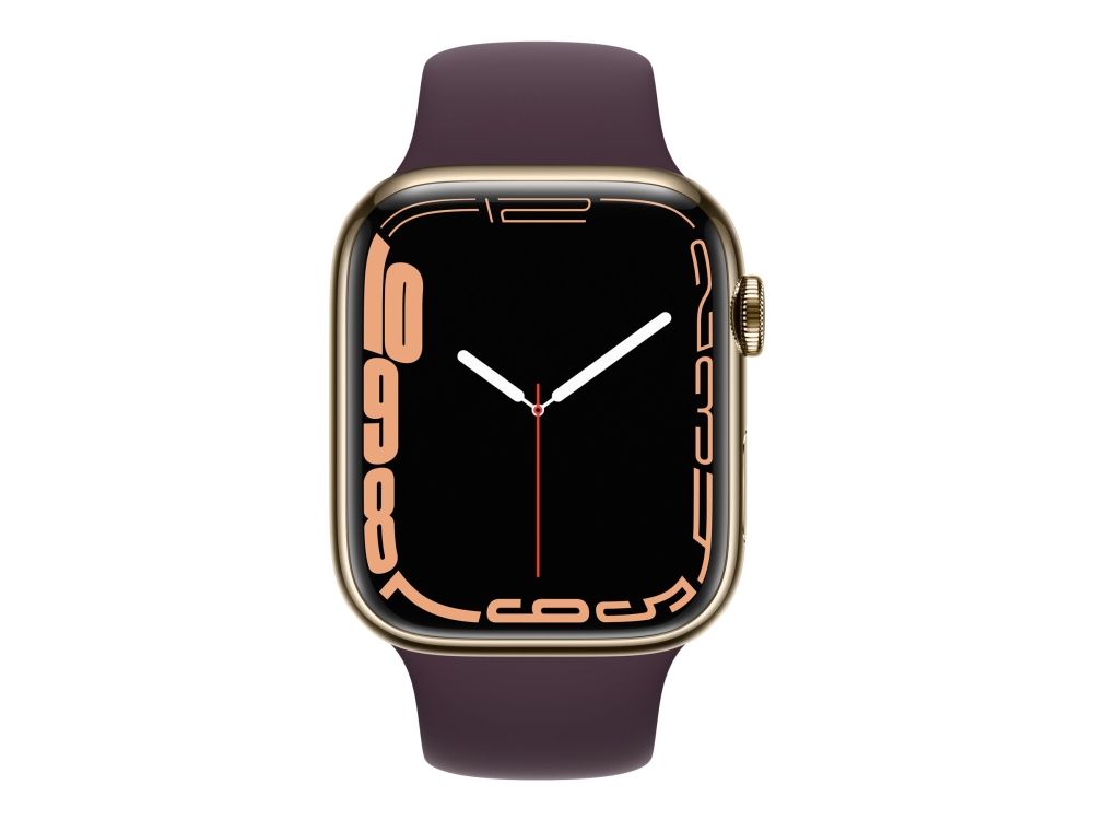 [OUTLET] - Apple Watch Series 7 (GPS + Cellular) - 45 mm - gyllen rustfritt stål - smartklokke med sportsbånd - fluorelastomer - mørk kirsebær - båndbredde: Regular - 32 GB - Wi-Fi, Bluetooth - 4G - 51.5 g