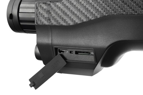 During the day, the observation distance of the Levenhuk Atom Digital DNM100 monocular is unlimited, and, at night, you can explore the surroundings within 200m (650ft). For stationary observations or shoots, the instrument can be mounted on a tripod with a 1/4" mount. A built-in recorder allows you to save footage in photo and video format on a memory card of high capacity (up to 128GB). The USB port is located next to the card slot. The maximum photo resolution can reach 4096x2160 pix, and videos are recorded in Full HD.