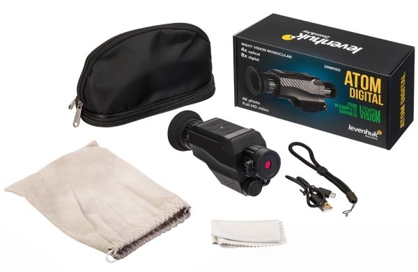 Levenhuk Atom Digital DNM100 Night Vision Monocular is your trusted device for observing distant objects at any time of the day. Regardless of the lighting conditions, the device produces a high-quality image at a magnification of 4x, which can be extra magnified by its digital zoom (1–8x). The monocular is great for hunting, orienteering, camping, and patrolling.