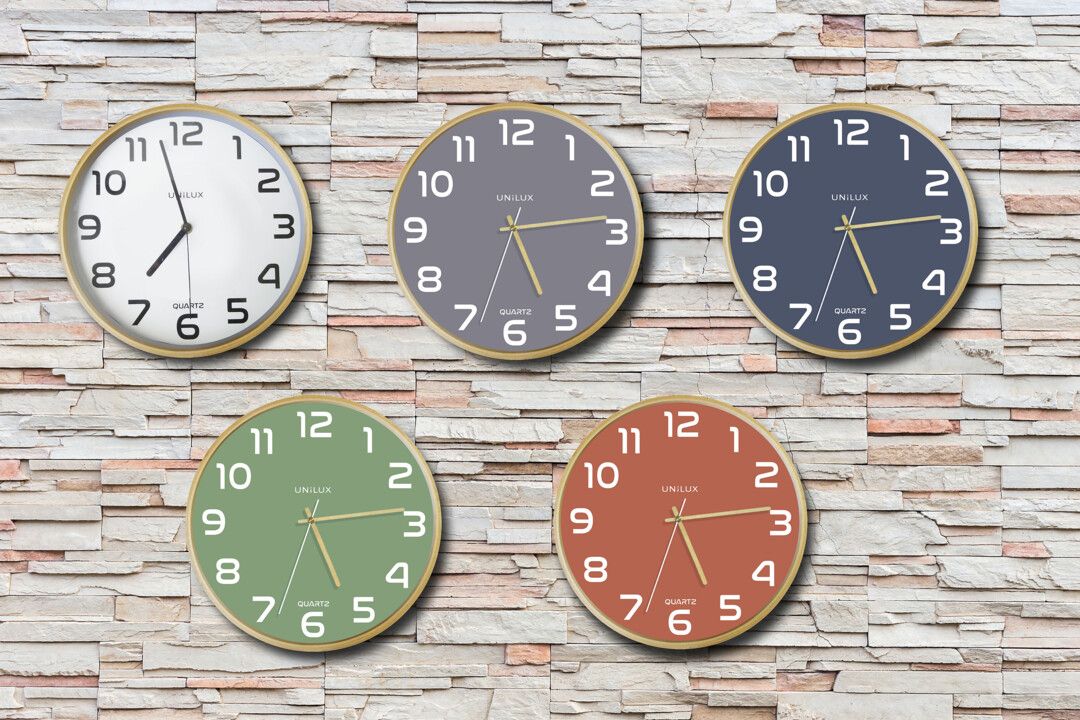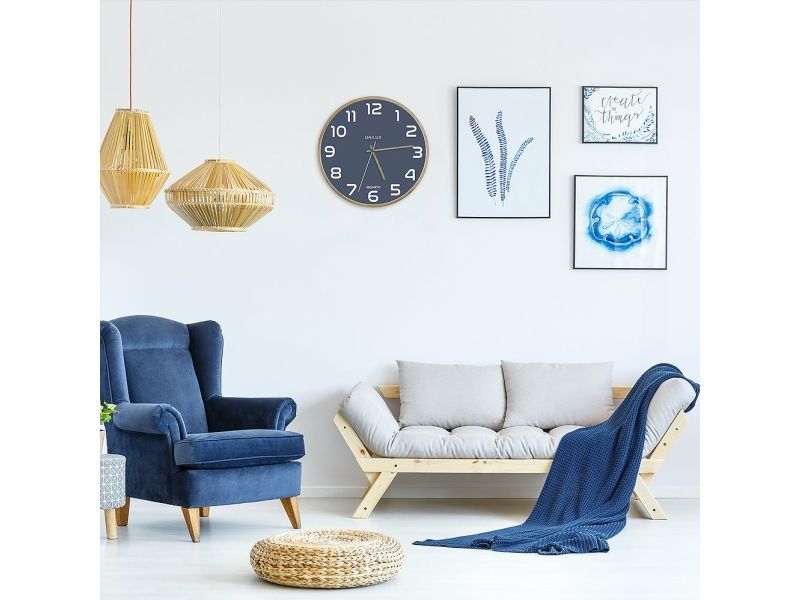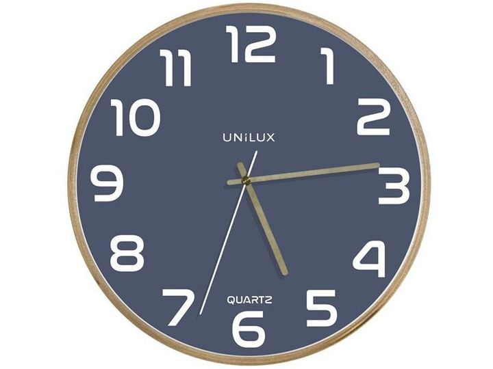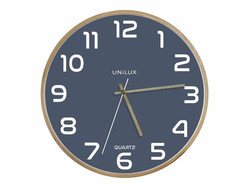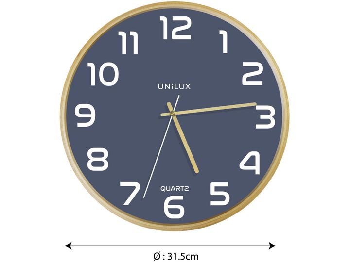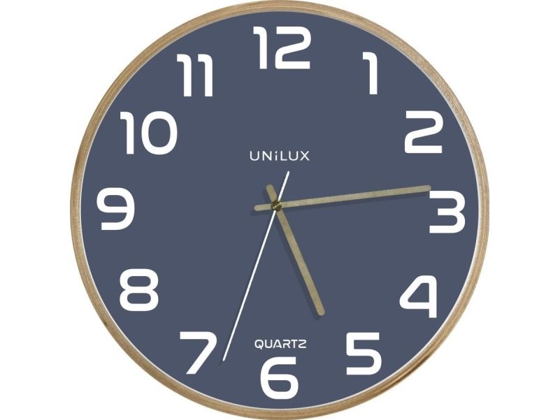 Unilux 400165110, Vegg, Analoge klokker, Rund, Bøk, Blå, Tre, Glass
