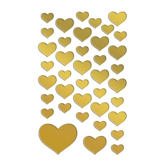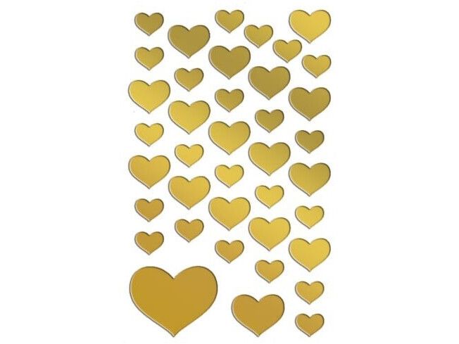 | • Skinnende guldhjerter i forskellige størrelser • Ideel til dekoration på kort, indbydelser og gaver • Klæber på papir, karton, cellofan og lignende materialer • Gennemtestet og i høj kvalitet • Advarsel: Ikke egnet til børn under 3 år pga. små dele, der kan sluges. |