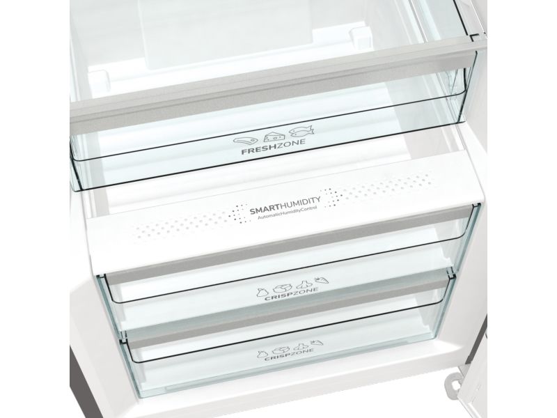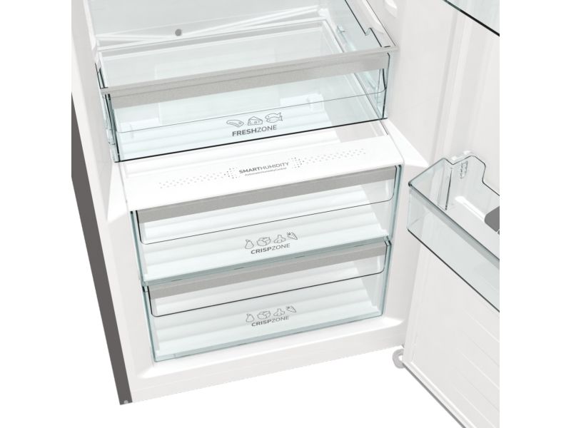 Flaskeholder 4 x hylle - justerbart glass 2 x hylle - glass Skuff - CrispZone med fuktighetskontroll