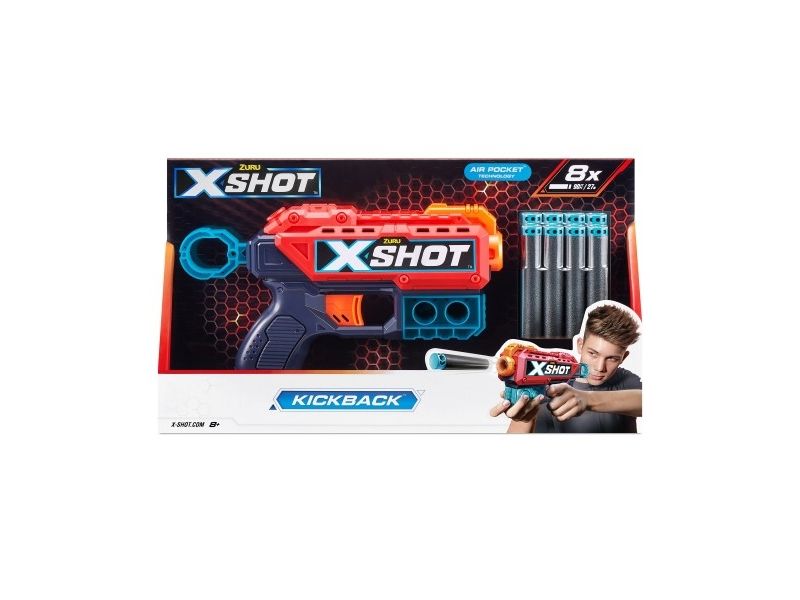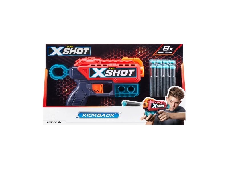 X-Shot Kickback er den perfekte lille blasteren som pakker nok kraft til å ta sikte 27 meter unna! Faktisk pakker den så mye kraft at den faktisk spretter tilbake når den avfyres!