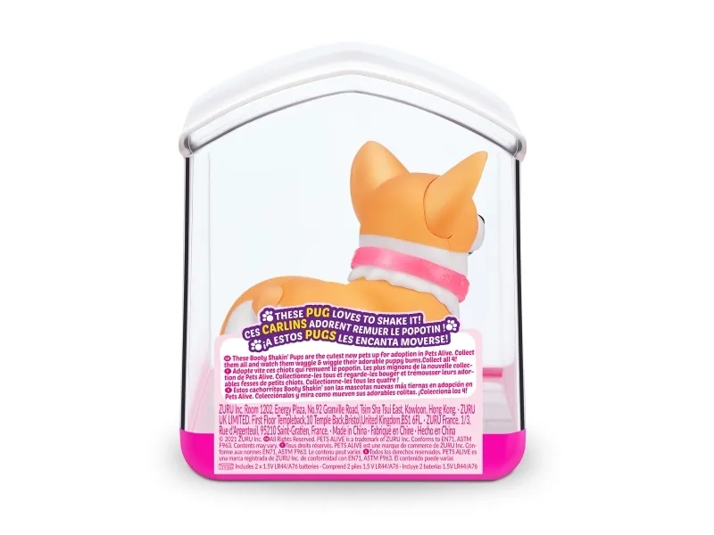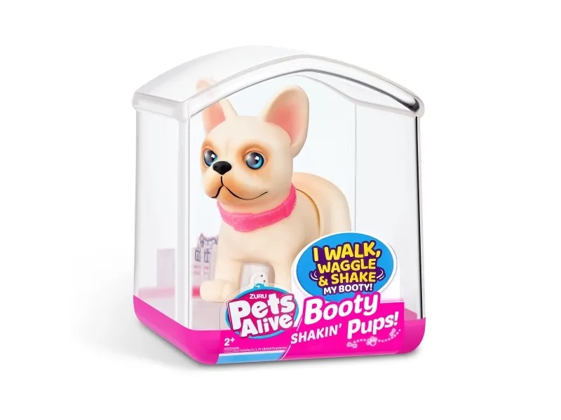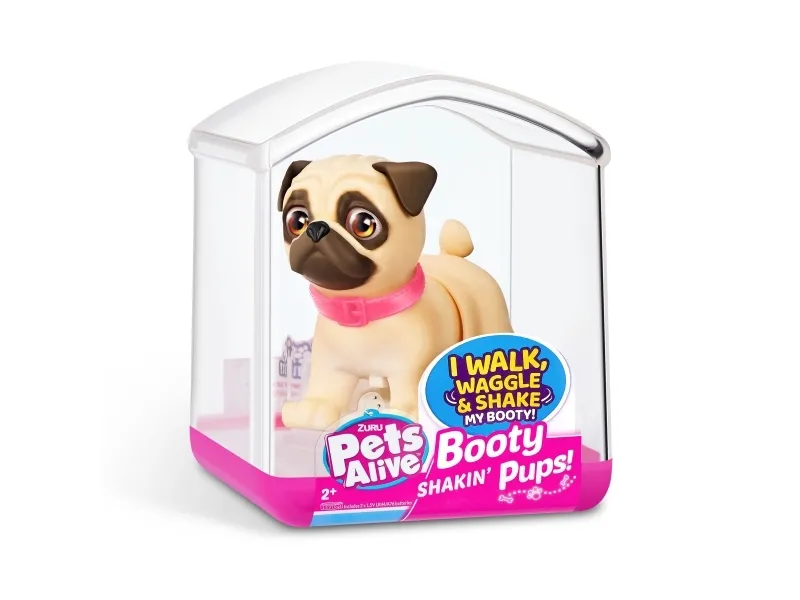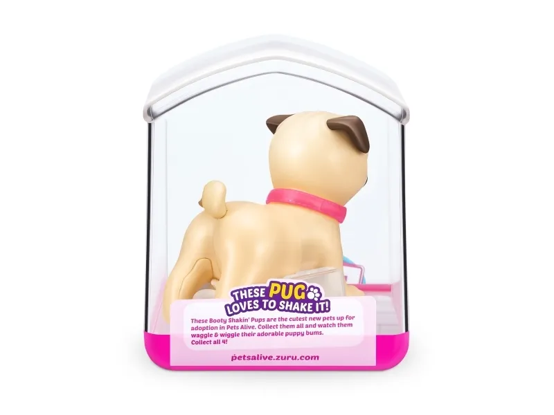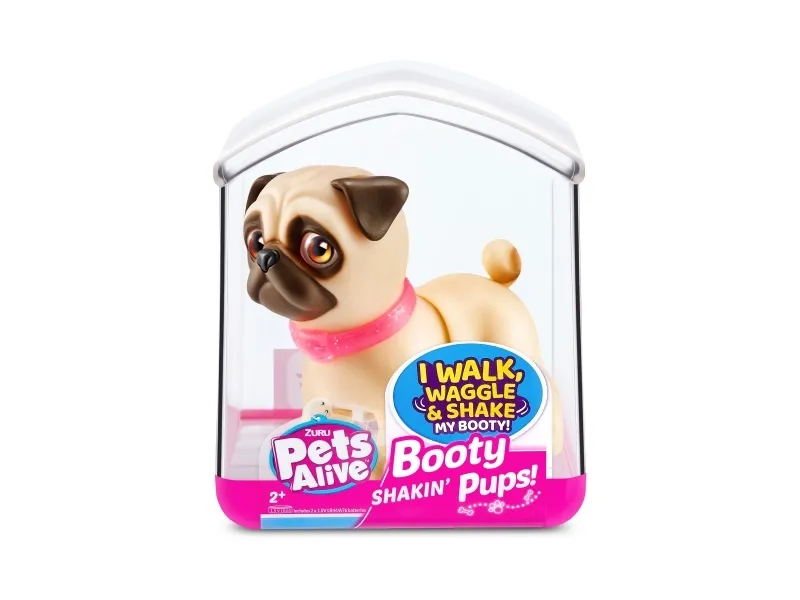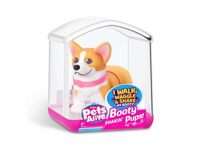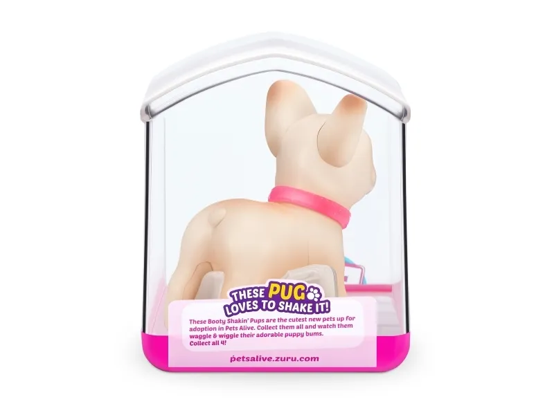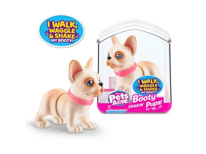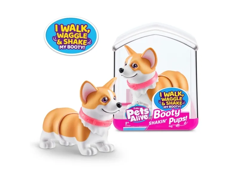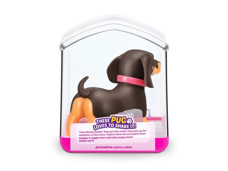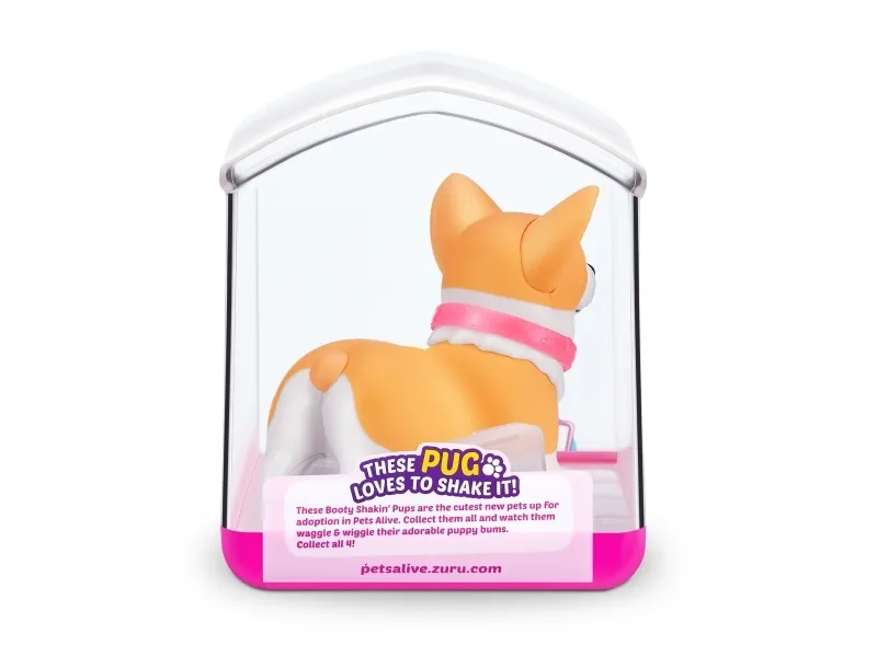 Det er på tide å møte dine nye bedårende bestevenner i lommestørrelse! Booty Shakin 'Pups er 4 bedårende valper du kan samle: den søte corgien, den vågale daschounden, den prangende mopsen og den fryktløse frenchien - hvilken vil du velge?! Slå på valpen og se den gå mens den rister med baken og logrer med halen. Selv om den er liten, har hver valp sitt eget avtakbare glitterkjede, søte klistremerker og søte glassøyne. Hver valp kommer også i sin egen unikt utformede kennelemballasje som fungerer som dens lille hjem. Ta med deg favorittvalpen din hjem i dag!