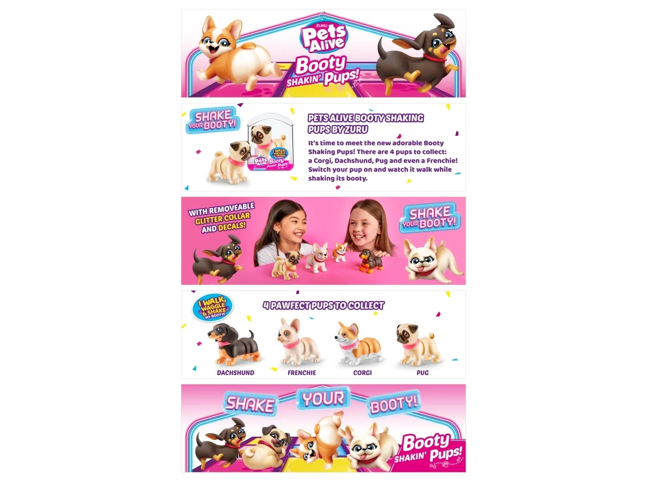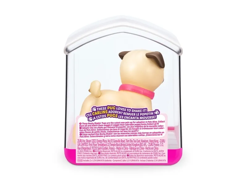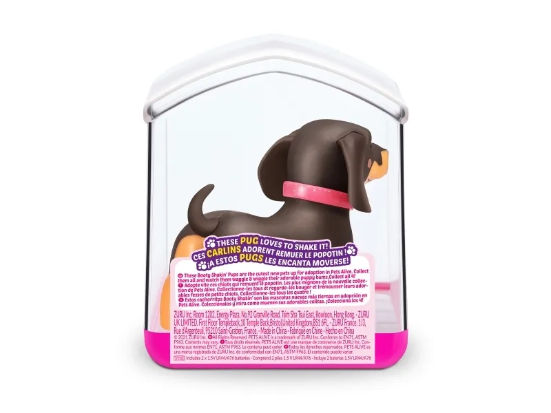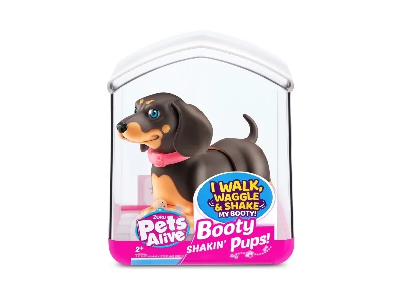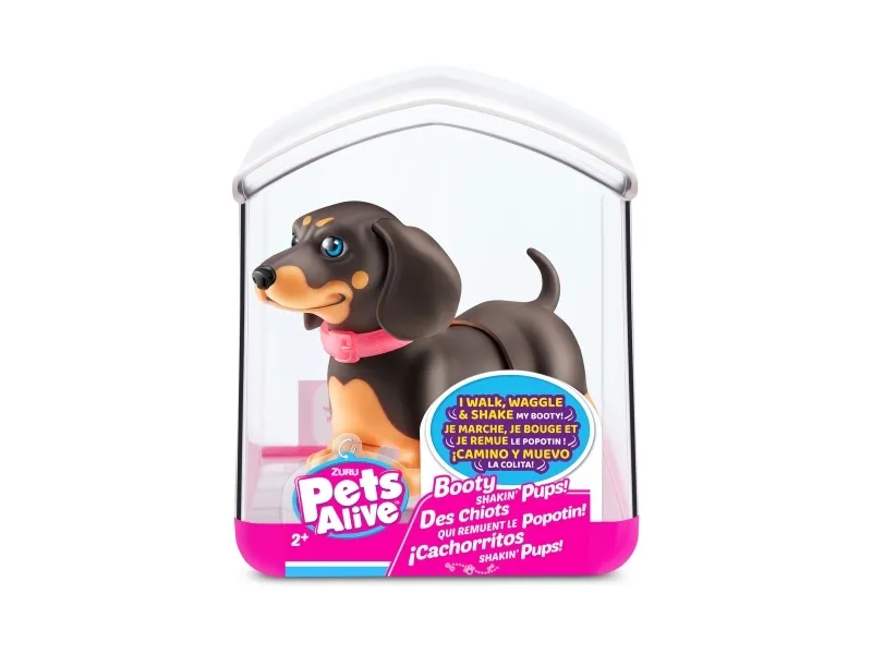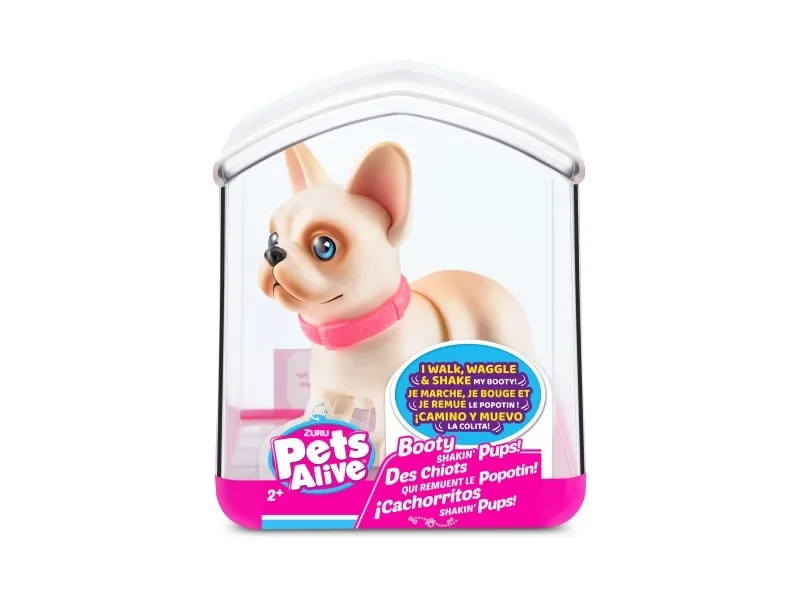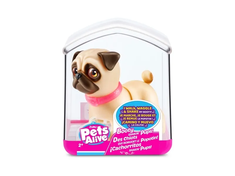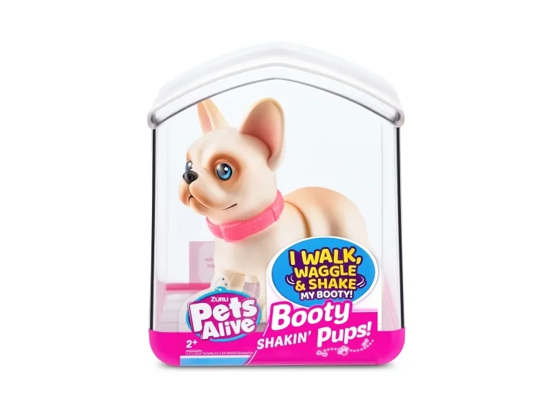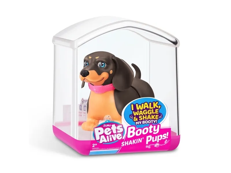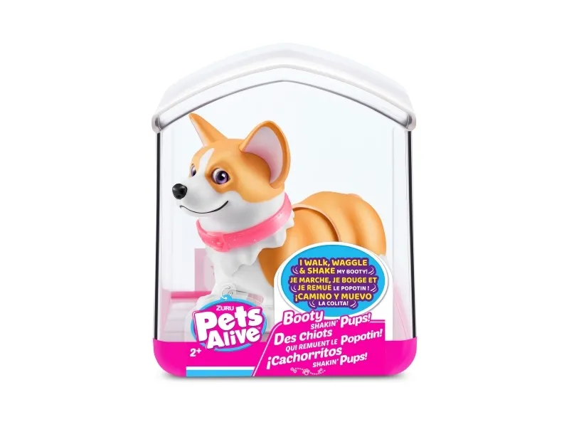 Det er på tide å møte dine nye bedårende bestevenner i lommestørrelse! Booty Shakin 'Pups er 4 bedårende valper du kan samle: den søte corgien, den vågale daschounden, den prangende mopsen og den fryktløse frenchien - hvilken vil du velge?! Slå på valpen og se den gå mens den rister med baken og logrer med halen. Selv om den er liten, har hver valp sitt eget avtakbare glitterkjede, søte klistremerker og søte glassøyne. Hver valp kommer også i sin egen unikt utformede kennelemballasje som fungerer som dens lille hjem. Ta med deg favorittvalpen din hjem i dag!