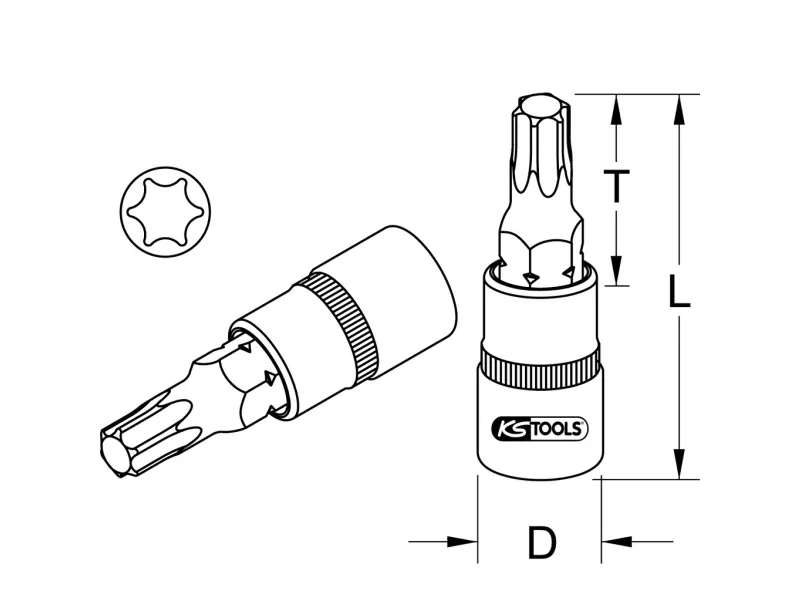 TorxIndvendigt firkantdrev iht. din 3120 / ISO 1174 med kuglefangerilleMed indpresset, forniklet bitindsatsTil manuel betjeningmat satineretKrom vanadium