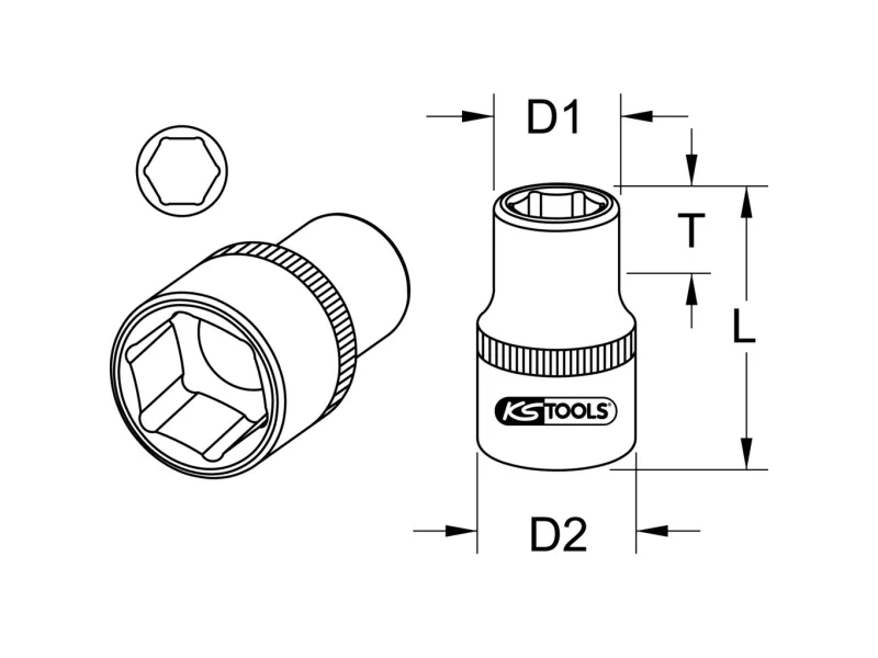 KS Tools 917.3808, Stikkontakt, 3/8", Metrisk, 1 hoder, 8 mm, Kromvanadiumstål