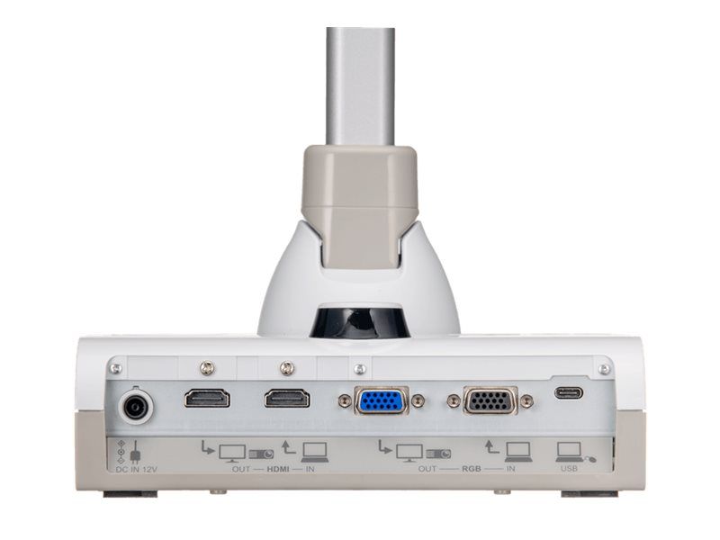 Display Wirelessly Connection made easy with Miracast Display.Elmo L-12G. Optical sensor size: 25.4 / 2.3 mm (1 / 2.3"), Sensor type: CMOS, Supported graphics resolutions: 3840 x 2160. Maximum focal length (f): 5 cm, Optical zoom: 12x, Digital zoom: 16x. Interface: USB 2.0, USB connector type: USB Type-A, USB Type-C. Compatible memory cards: SD, Maximum memory card size: 32 GB. Power supply type: DC, Power consumption (typical): 21.6 W, Operating voltage: 12 V