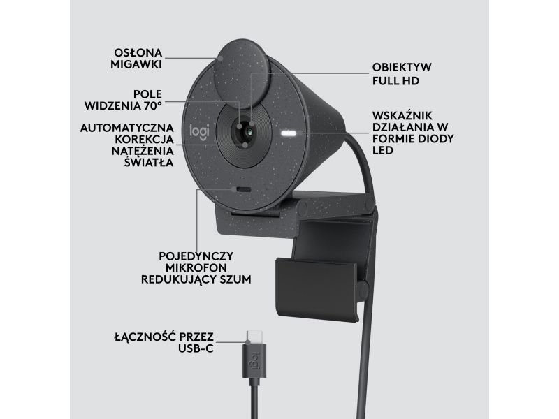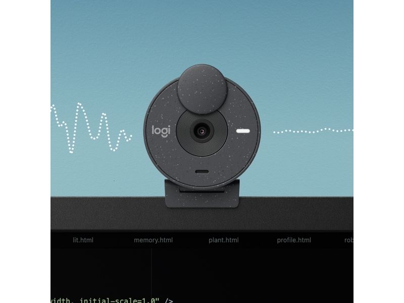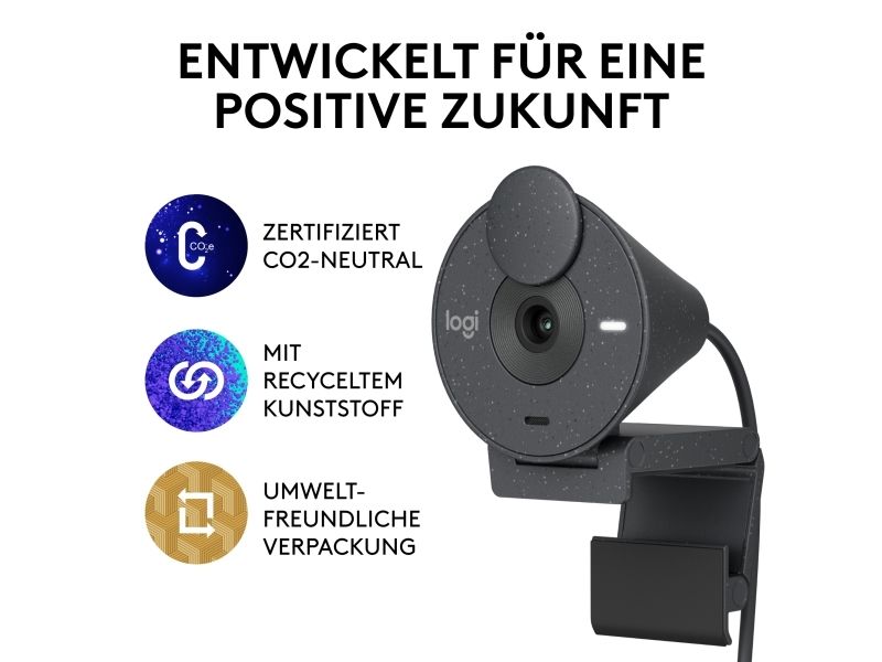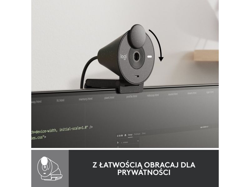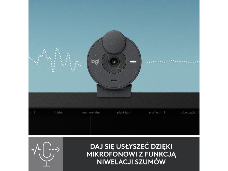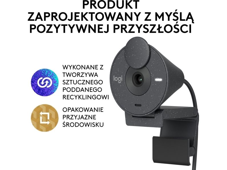 Si hallo til bedre videomøter. Sett Brio 300 i din beste vinkel for en øye-til-øye-tilkobling. Se naturlig ut takket være 1080p oppløsning og automatisk lyskorreksjon for situasjoner med dårlig lys. En støydempende mikrofon undertrykker bakgrunnsstøy slik at andre kan høre deg tydelig. Spinn den brukervennlige personvernlukkeren for å dekke objektivet mellom samtaler. Brio 300 er sertifisert for Microsoft Teams, Google Meet og Zoom, slik at du kan ha møter uten problemer. Tilfør personlighet til arbeidsplassen din med en moderne form og en unik prikkete design laget av minst 48 % resirkulert plast.
