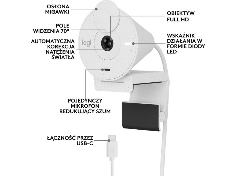 Si hallo til bedre videomøter. Sett Brio 300 i din beste vinkel for en øye-til-øye-tilkobling. Se naturlig ut takket være 1080p oppløsning og automatisk lyskorreksjon for situasjoner med dårlig lys. En støydempende mikrofon undertrykker bakgrunnsstøy slik at andre kan høre deg tydelig. Spinn den brukervennlige personvernlukkeren for å dekke objektivet mellom samtaler. Brio 300 er sertifisert for Microsoft Teams, Google Meet og Zoom, slik at du kan ha møter uten problemer. Tilfør personlighet til arbeidsplassen din med en moderne form og en unik prikkete design laget av minst 48 % resirkulert plast.