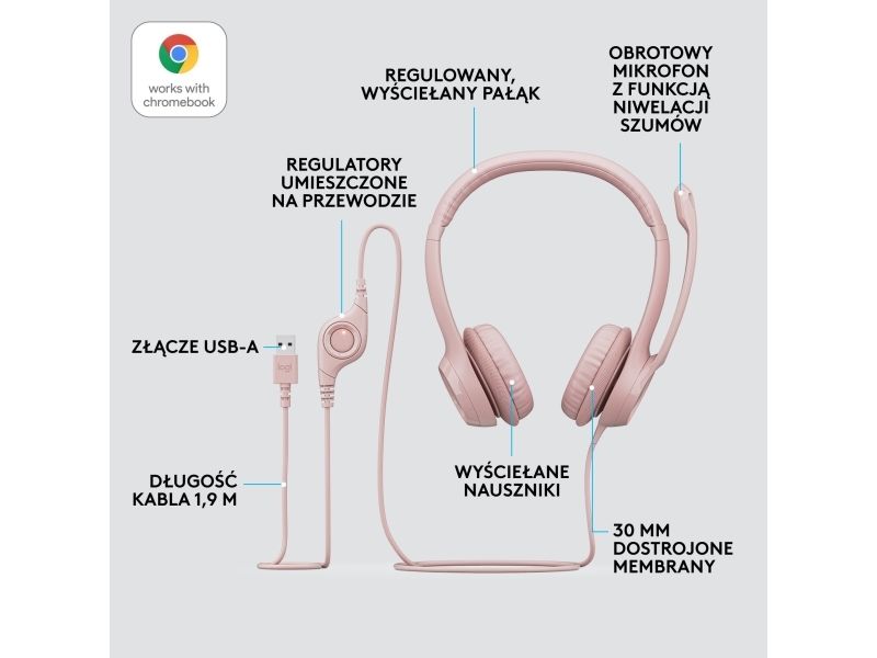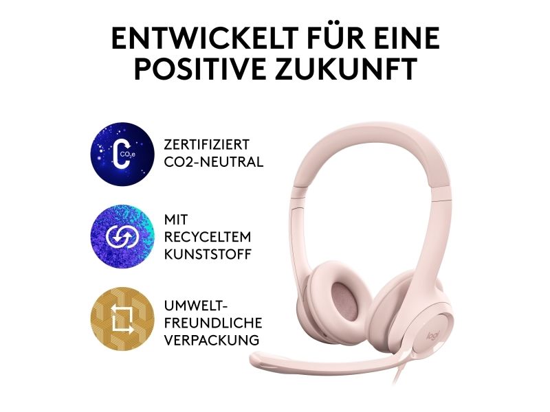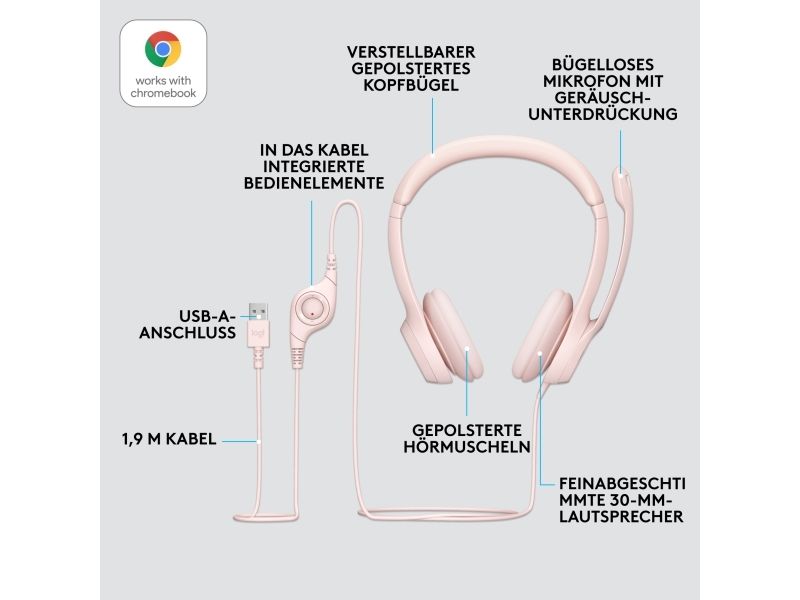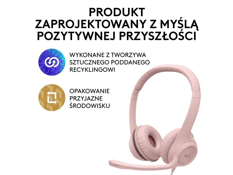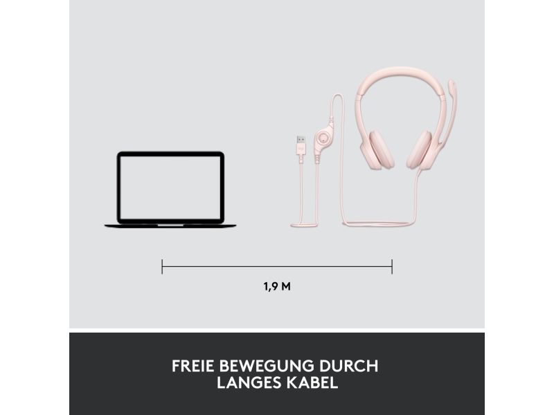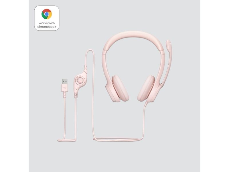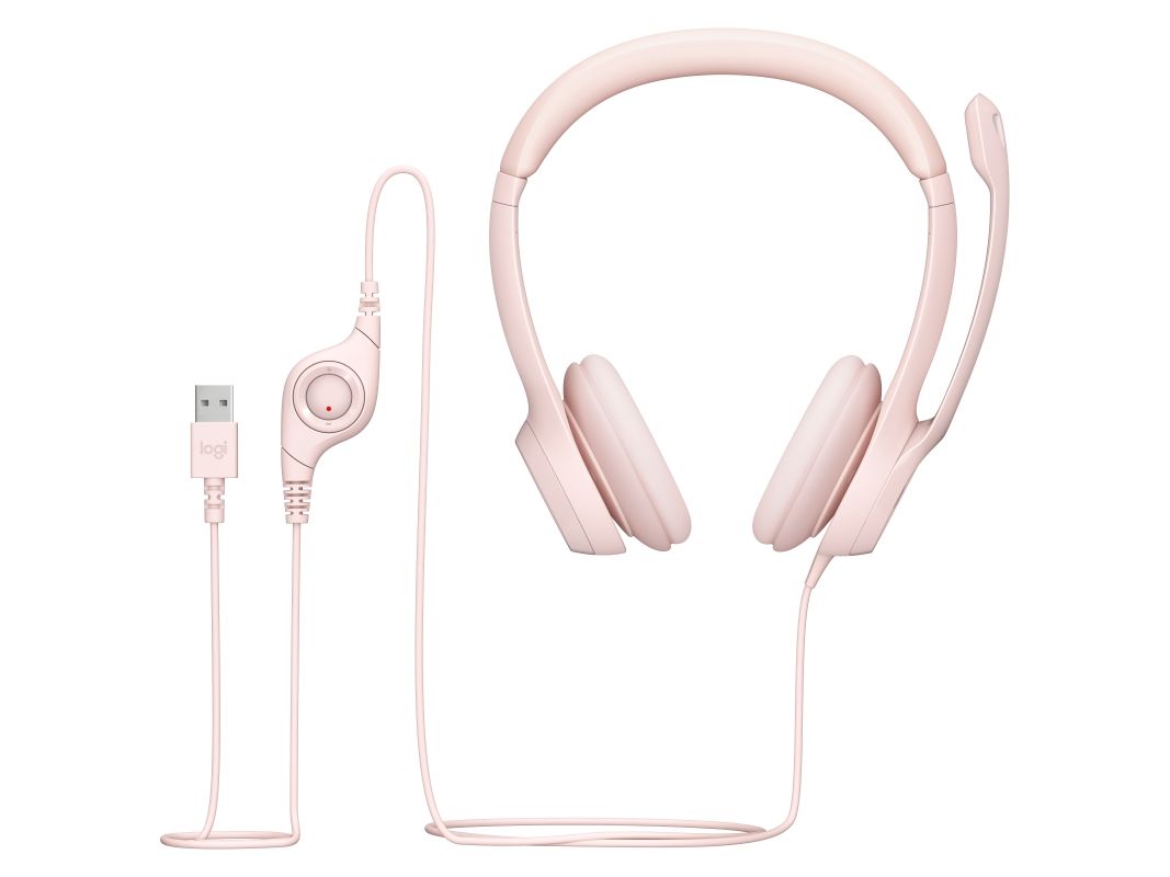 Logitech USB Headset H390 - Headset - på øret - kabling - USB - Rose
